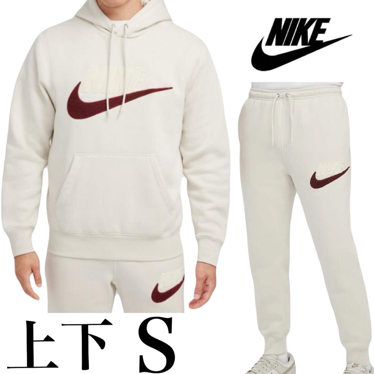 【新品 正規品】ナイキ NIKE パーカー パンツ 上下セット S クリーム ベージュ セットアップ プルオーバー