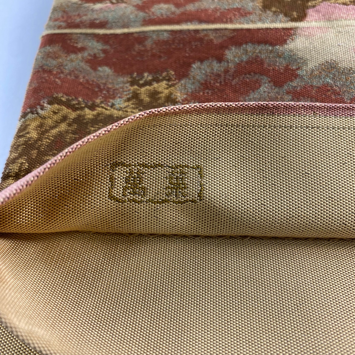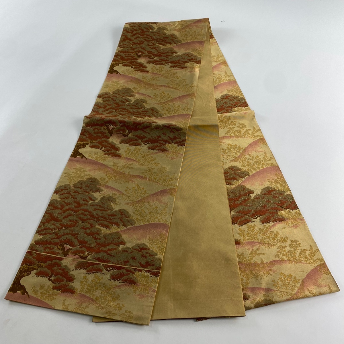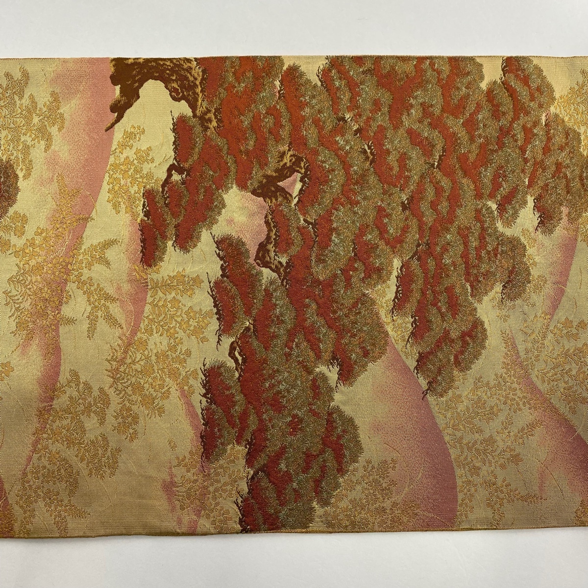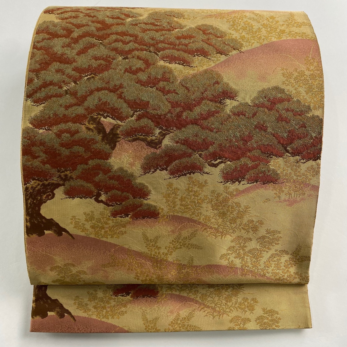 | 袋帯 美品 秀品 落款 萬葉 松 草花 ベージュ 全通 正絹 【中古】 |