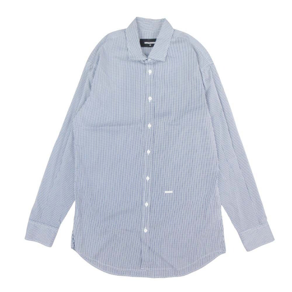 商品名:17ss DSQUARED2 ディースクエアード ギンガムチェック シャツ カジュアルシャツ 長袖 コットン イタリア製 44 紺 ネイビー