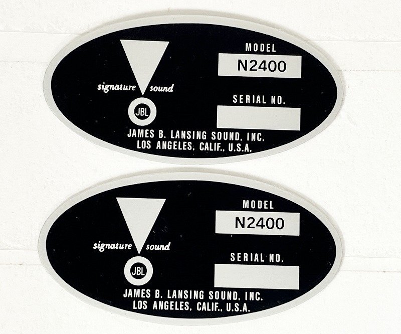 JBL N2400 プレート 2枚です。 こちらは複製品となります。 複数ございますので、同等品の発送となります。 ・サイズ:62.7×31.7(mm) |