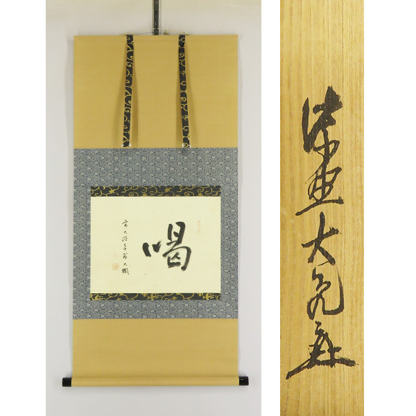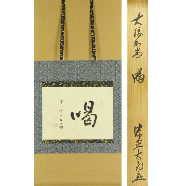 B-4437【真作】大綱宗彦 肉筆紙本 喝 書幅 立花大亀箱書 掛軸/臨済宗 京都 大徳寺 黄梅院 墨蹟 書画