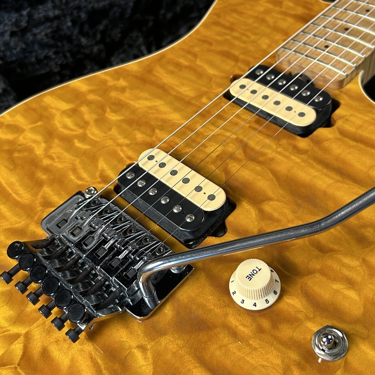 ピックアップには、専用に開発されたディマジオ・カスタム・ピックアップがダイレクト・マウントされ、トレモロ・システムは、深いアーミングが可能なフロイドローズ・ライセンス・トレモロをノンフローティングでセットした仕様となっています。