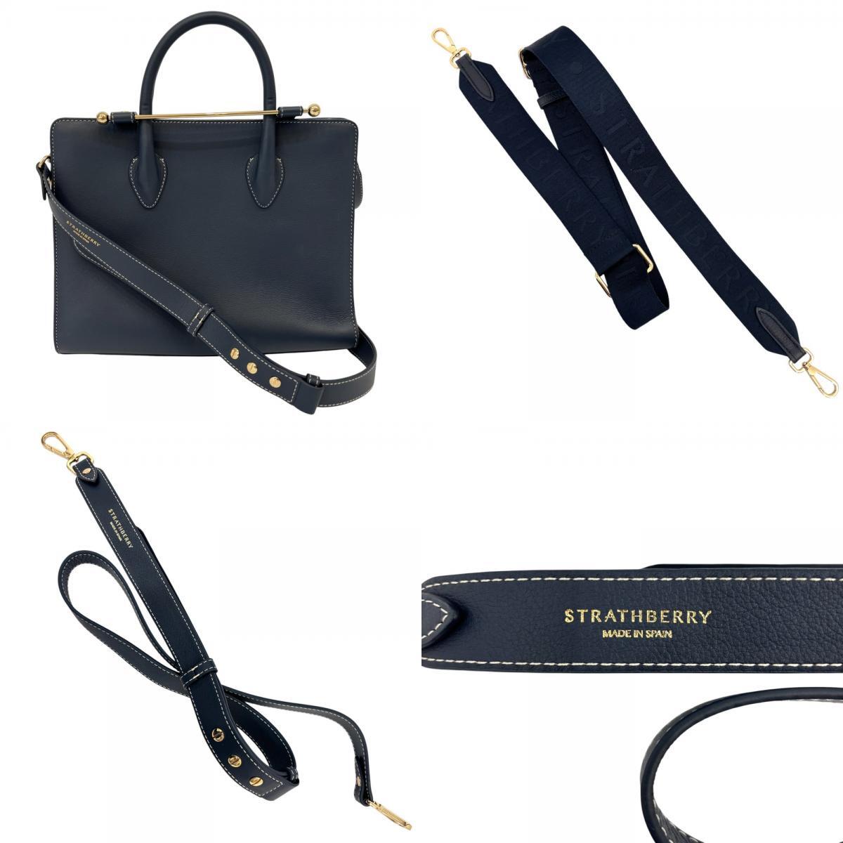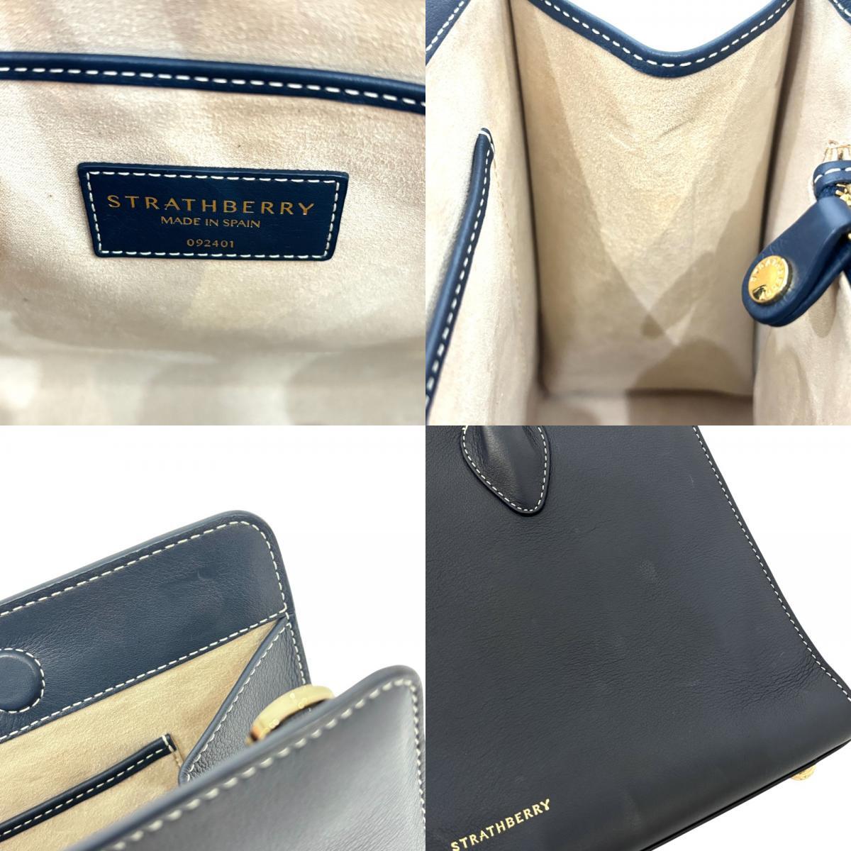 美品 Strathberry ストラスベリー Midi Tote 2wayハンドバッグ ショルダーバッグ ネイビー