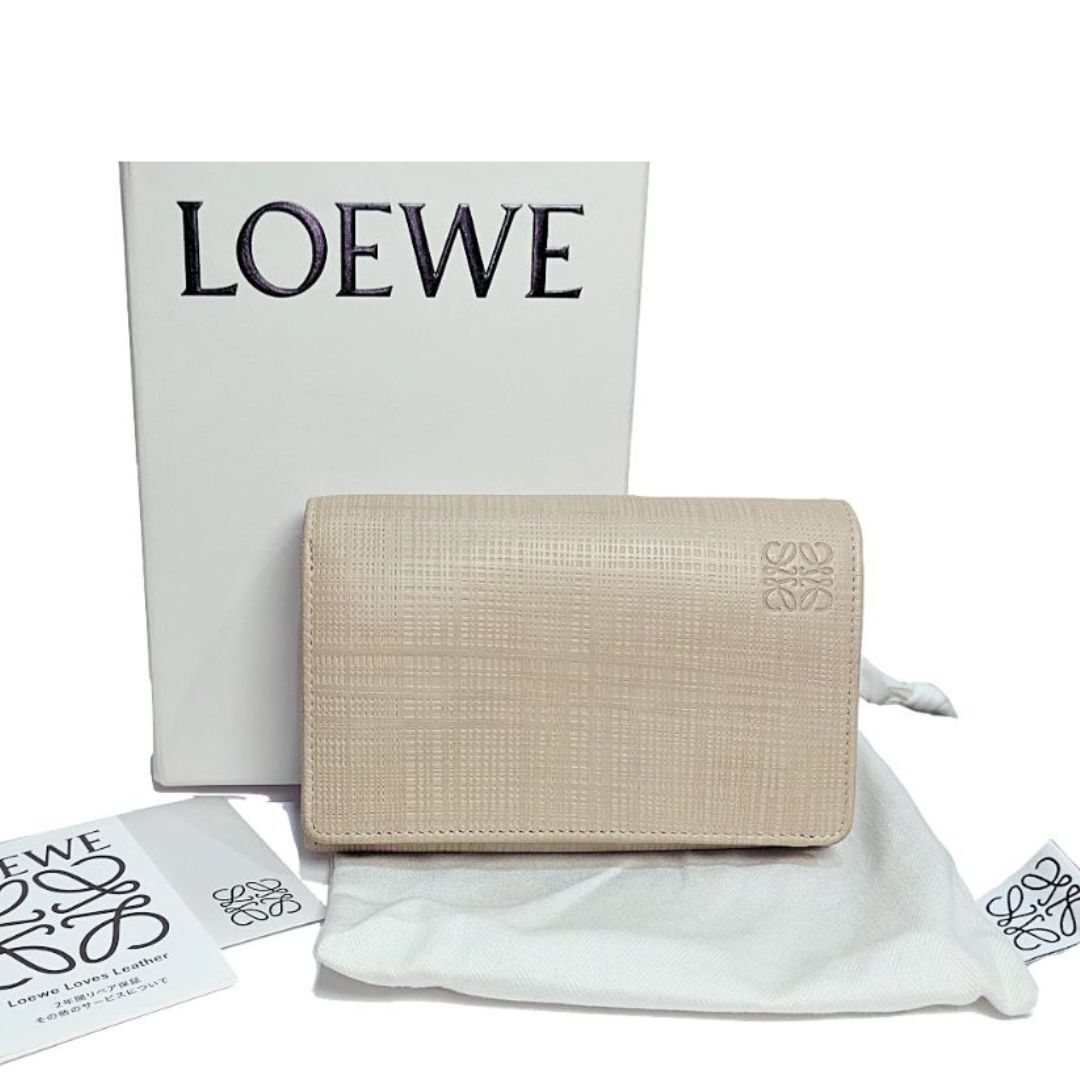 「国内正規品 LOEWE ロエベ リネン アナグラム 二つ折り財布 ビルフォード & コインパース レザー ライトカーキ」です。