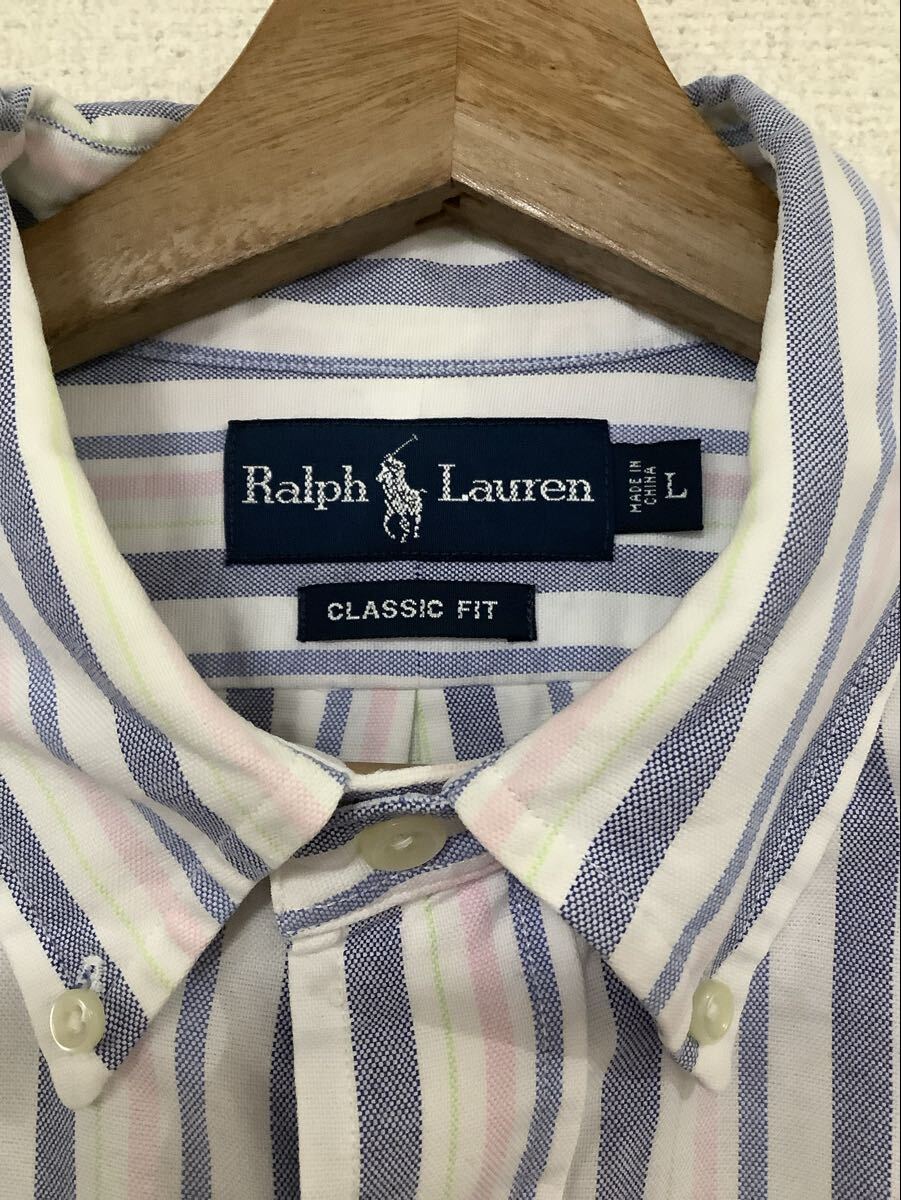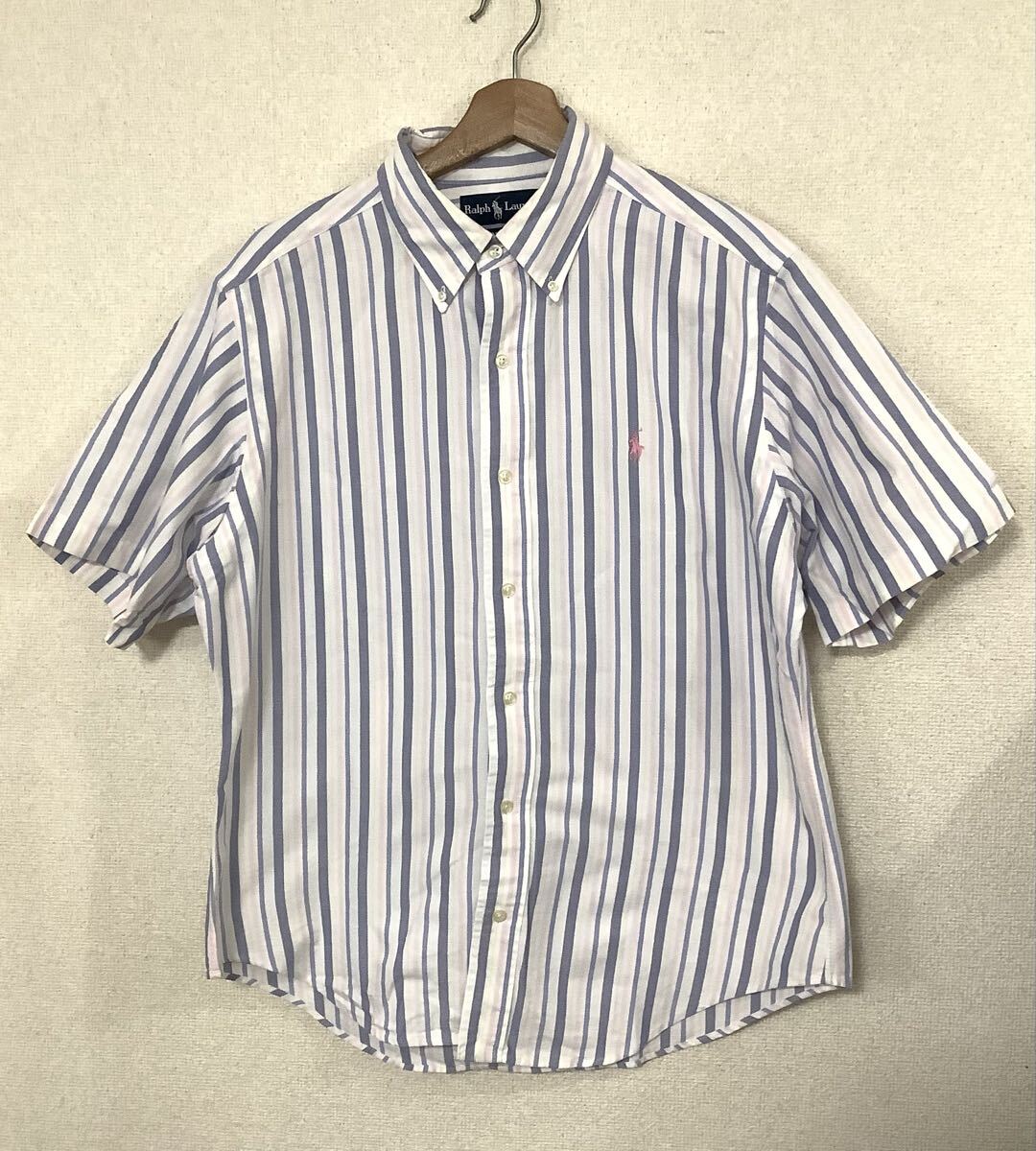RALPH LAUREN ラルフローレン クラッシックフィット ストライプ柄 半袖ボタンダウンシャツ セレクト カジュアル 古着 L