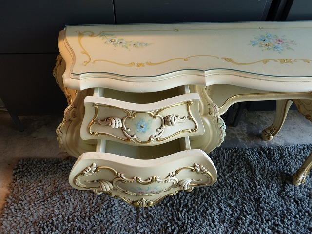 商品説明 | ・ご入札前に自己紹介欄をご覧ください。 ・落札後48時間以内にご連絡がない場合は落札者様都合で取り消させていただきます。期限内にご連絡・ご入金いただけない場合は、その場合、システム上自動的に悪い評価がつきますので予めご了承ください。 ・中古品ですので、状態等は画像にてご判断出来る方のみでご入札をお願いいたしております。 また、商品の状態はあくまでも主観によるものです。説明にない多少の傷やスレ等はあるものとご理解の上、ご入札ください。 ・人力で搬入不可能な場合は吊り上げ・クレーン料金が別途必要になります。大型商品は搬入経路の寸法確認をお願いします。搬入できない等のキャンセルは一切受付できません。 ■ メーカー: SILIK(シリック) ■ 品名: ドレッサー (ミラー+コンソールテーブル)ITALY ロココ様式 彫刻 ■ 状態: used 自立不可(壁面固定が必要です) ■ サイズ: ミラー W1280 H1150 mm コンソール W1530 D330 H630 mm ※ご入札前のご見学等お断りさせて頂いております。ご理解のほど宜しくお願い致します。 ‐‐‐‐‐‐‐‐‐‐‐‐‐‐‐‐‐‐‐‐‐‐‐‐‐‐‐‐‐‐‐‐‐‐‐‐‐‐‐‐‐‐‐‐‐‐‐‐‐‐‐‐‐‐‐‐‐‐‐‐ 出品商品はused品となります。 15年ほど前に購入されたお品です。 格安出品となりますので、お早めにご検討ください。 ■状態【B】 ------------------------ 商品の状態ランク ---------------------- 【New】 新品未開封 【SS】 在庫未使用(開封品) 【S】 中古極美品(使用が殆どなく、未使用品に近い極めてきれいな商品) 【A】 中古きれい(使用回数が少なく、大変きれいな商品) 【B】 中古ふつう(通常にある程度使用された商品) 【C】 中古使い込んでいる(キズや汚れが目立つがまだまだ使える商品) 【N】 中古難アリ(付属品の欠品が多い、または一部動作しないところがある) 【J】 ジャンク(故障している商品、部品取りなどにご利用ください) ---------------------------------------------------------------- 画像に写っていない傷や見落しもあるかと思います。 ご配慮いただける方のみご入札下さい。 ※運搬事故の場合は落札金額内の修理、もしくはご返金となります。落札金額以上の修理等行っておりませんので、ご理解のほど宜しくお願い致します。 ※付属品は画像にあるものが全てとなります。 ※フラッシュやお使いの モニターの環境などにより、実際の色と異なる場合がございますのでご了承ください。カラー・状態が説明と異なるなど、微妙な点を気になされる方は、お近くのお店でご購入をお勧めいたします。 ※不足分は落札者様の方でご用意願います。詳しくは画像にてご確認下さいませ。 ※完品をお求めの方、神経質な方は入札をご遠慮下さいますようお願い申し上げます。 ※返品不可設定商品につきましてはノークレーム・ノーリターンをお約束願います。 |