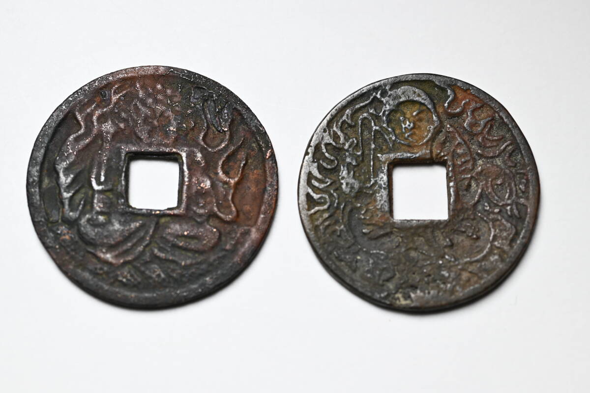 古銭 絵銭【不動明王・開運下総国 成田山】2枚まとめて 仏銭 穴銭 径約25mm・26mm 仏教美術 佛教 明王 福銭 | |||