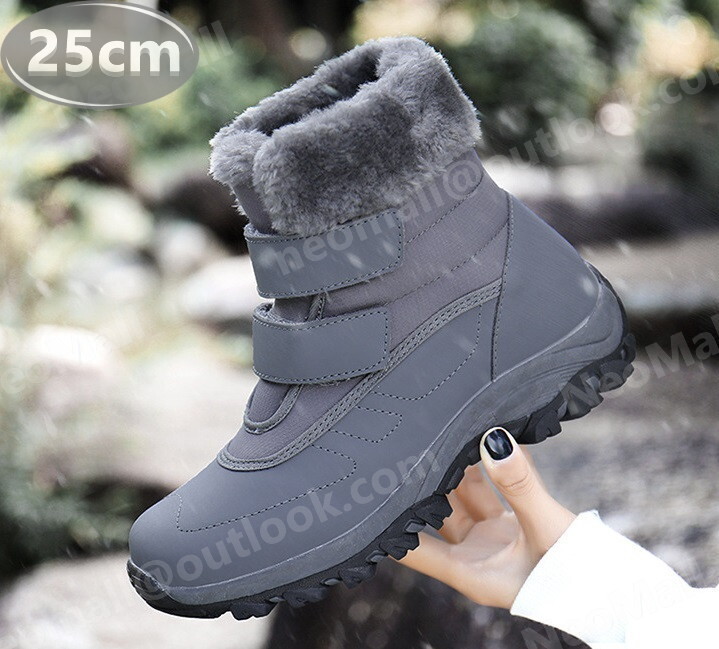 レディース スノーシューズ 【971】 グレー 25.0cm ムートンブーツ スニーカー ウィンターブーツ 裏起毛 防水 防寒 防滑 冬用靴 綿靴