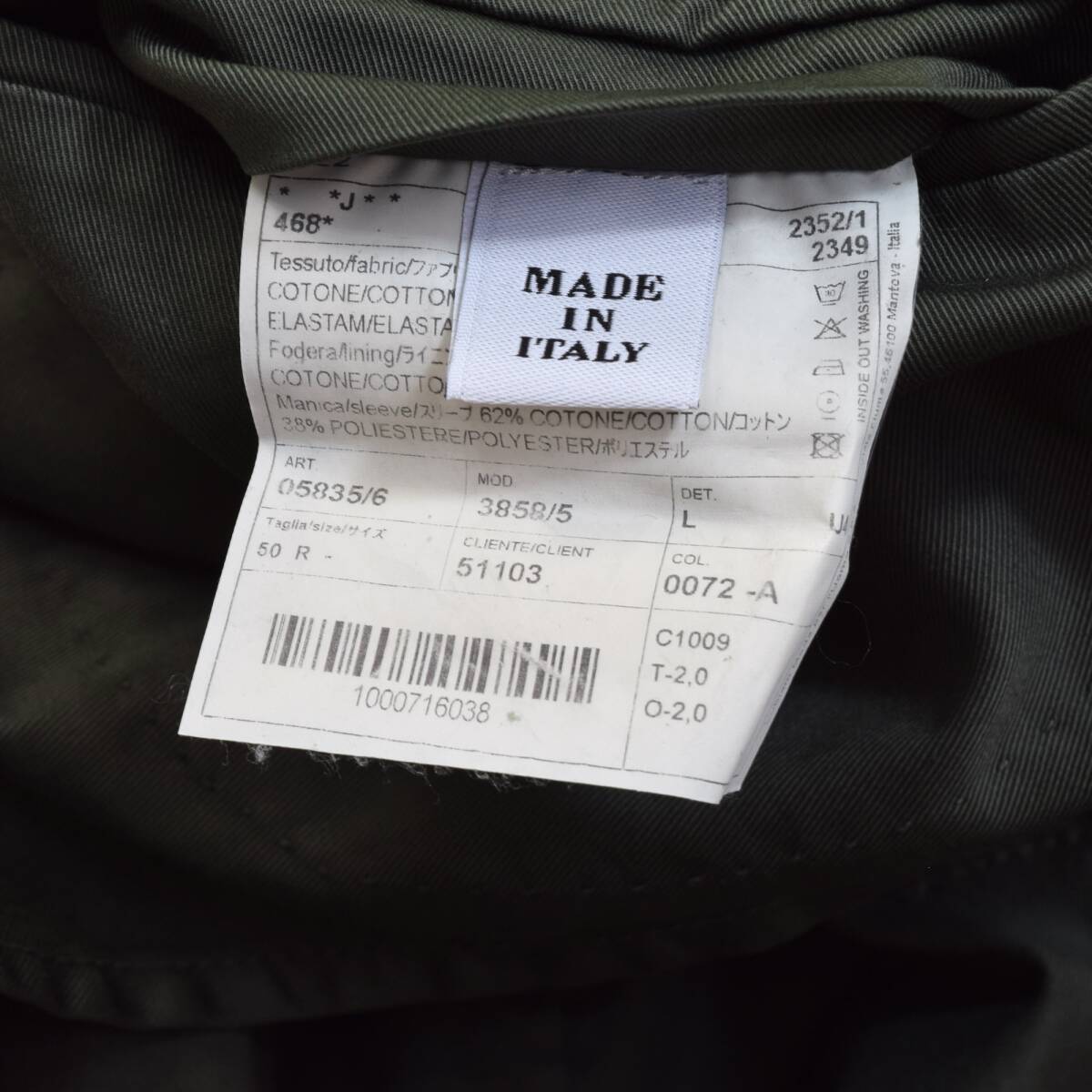 サイズ表記はイタリアサイズ「50 (SLIM FIT)」で、
