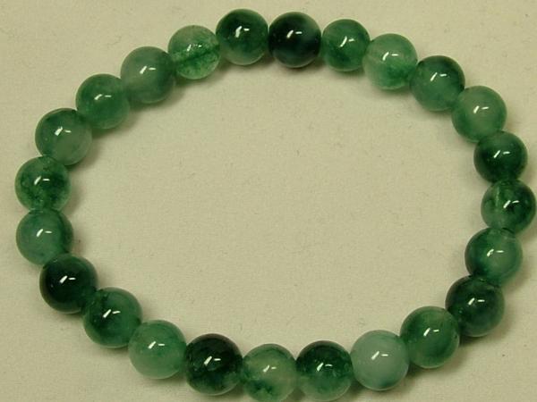 ▲商品説明▲ | 環周(内):約155mm 1P直径:約8mm 重さ:16.8g 緑色が綺麗なミャンマー翡翠。透明感の有る氷種(アイスジェダイト)です。気軽に装着出来る8mm玉のブレスレット。色の濃淡が場所に依って違う飽きのこない一品です。(当品はA貨翡翠ではありません) ※環周サイズに御注意ください。 | |