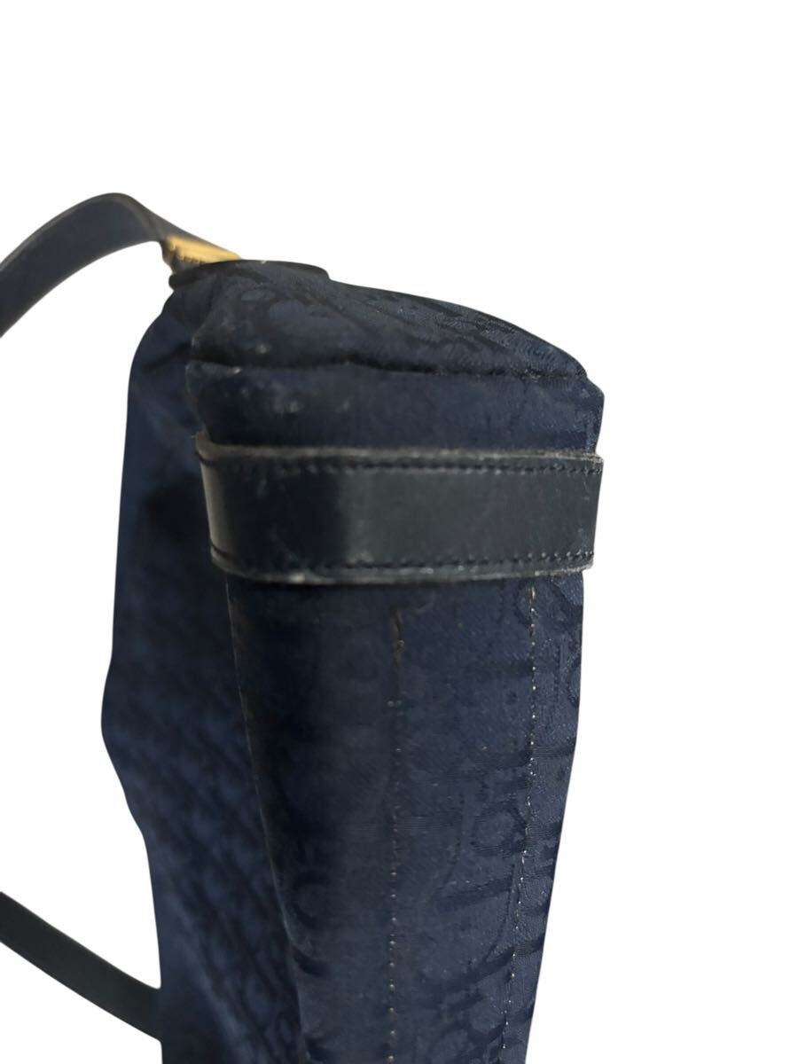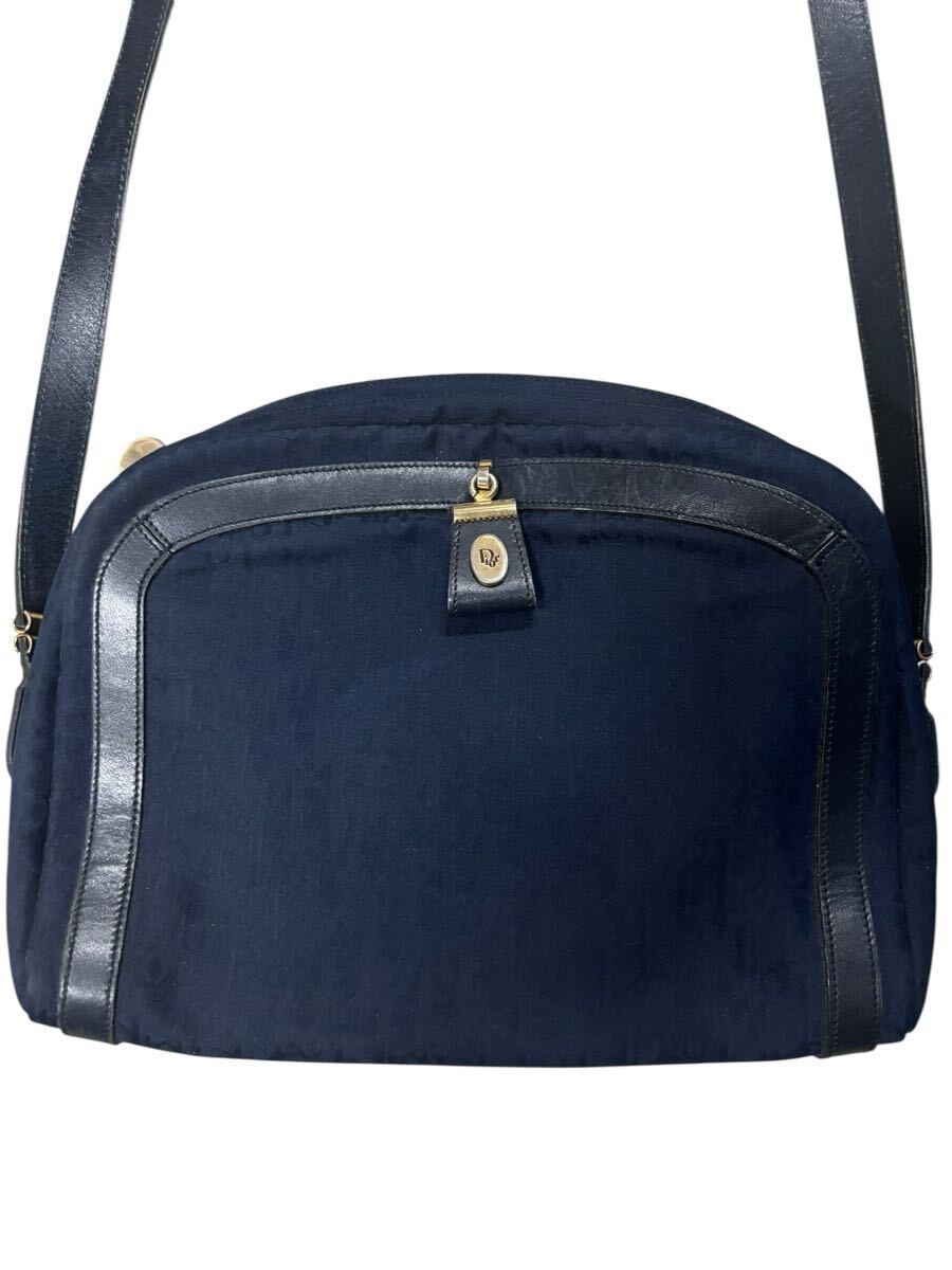 クリスチャンディオール ショルダーバッグ ネイビー レザー×ジャガード ヴィンテージ