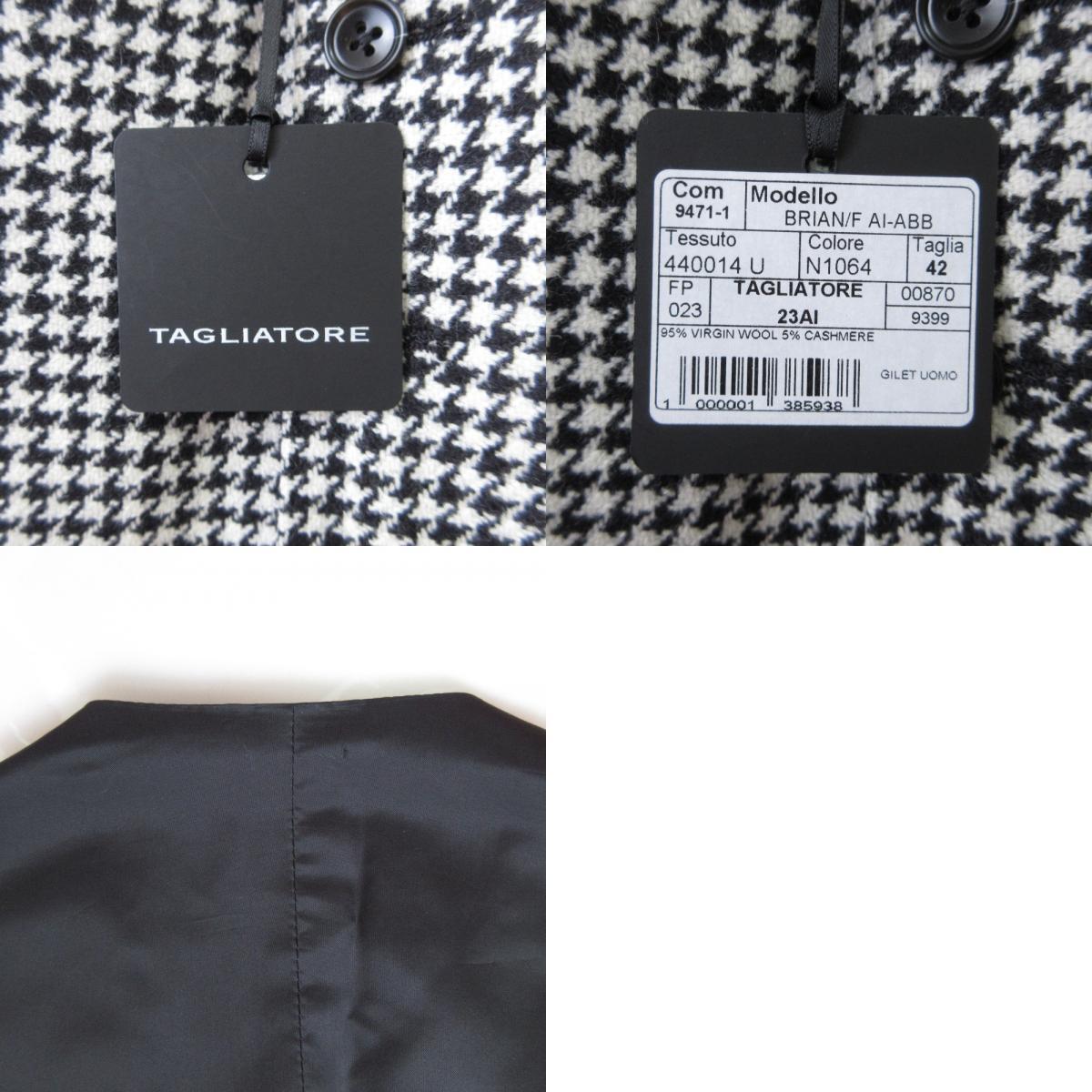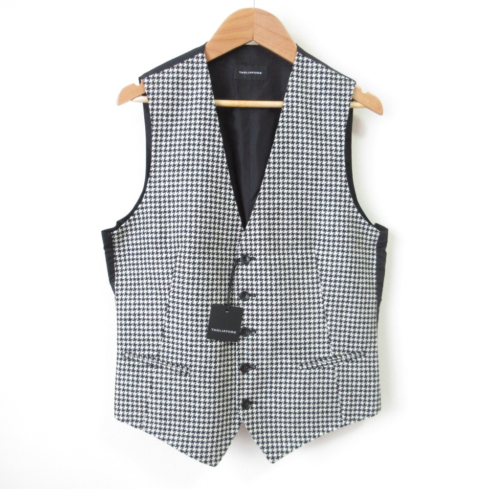 未使用 TAGLIATORE タリアトーレ BRIAN/F 千鳥格子柄 ウール ジレ べスト 42 ブラック