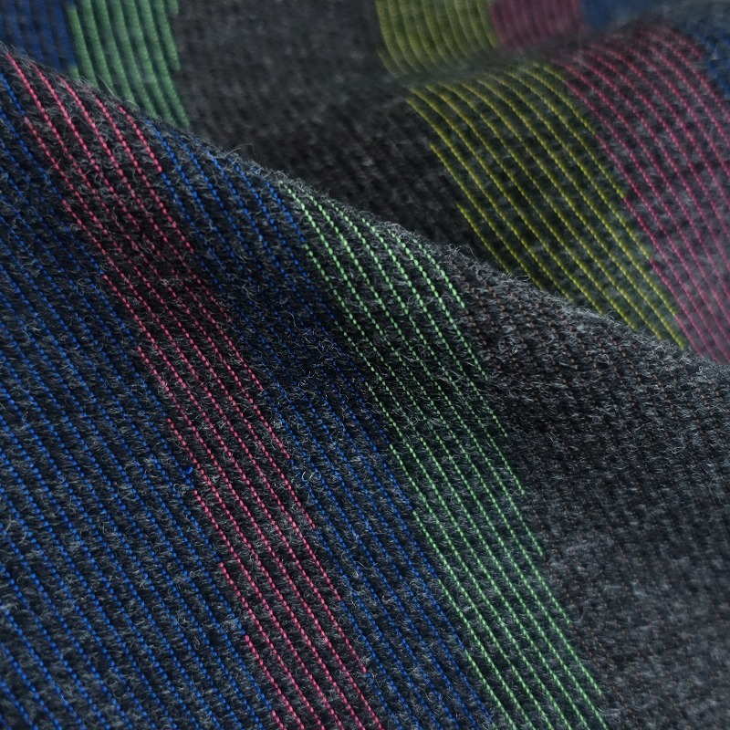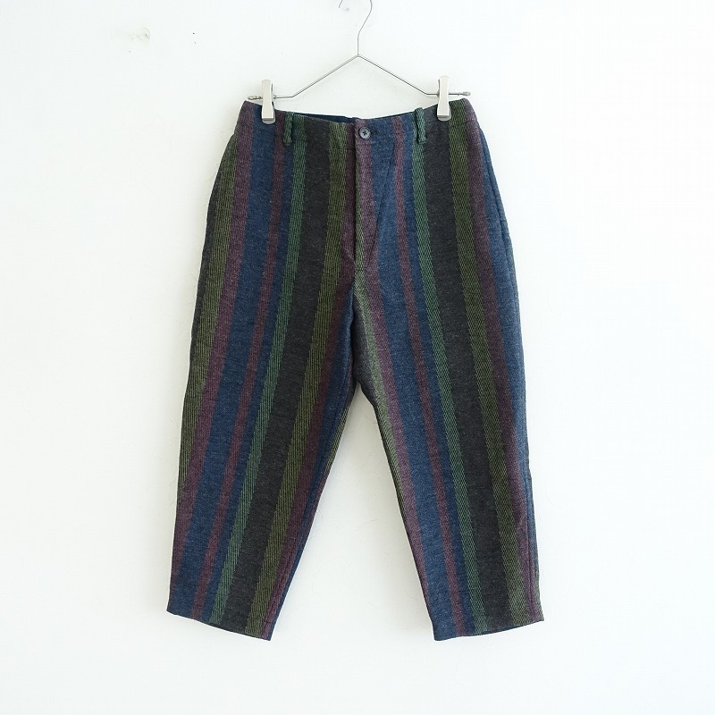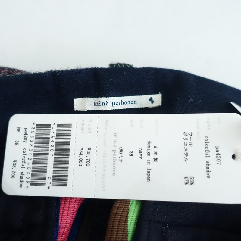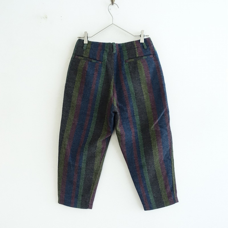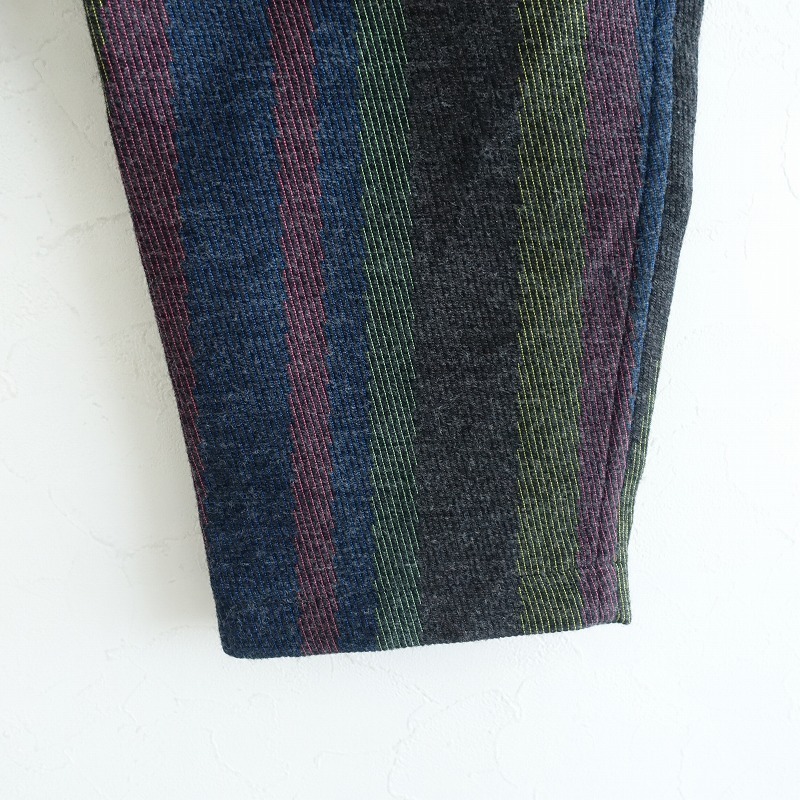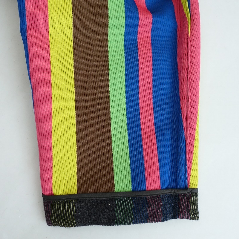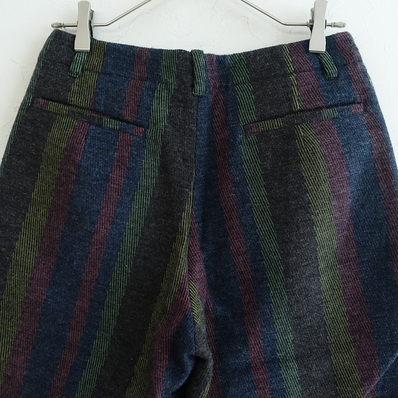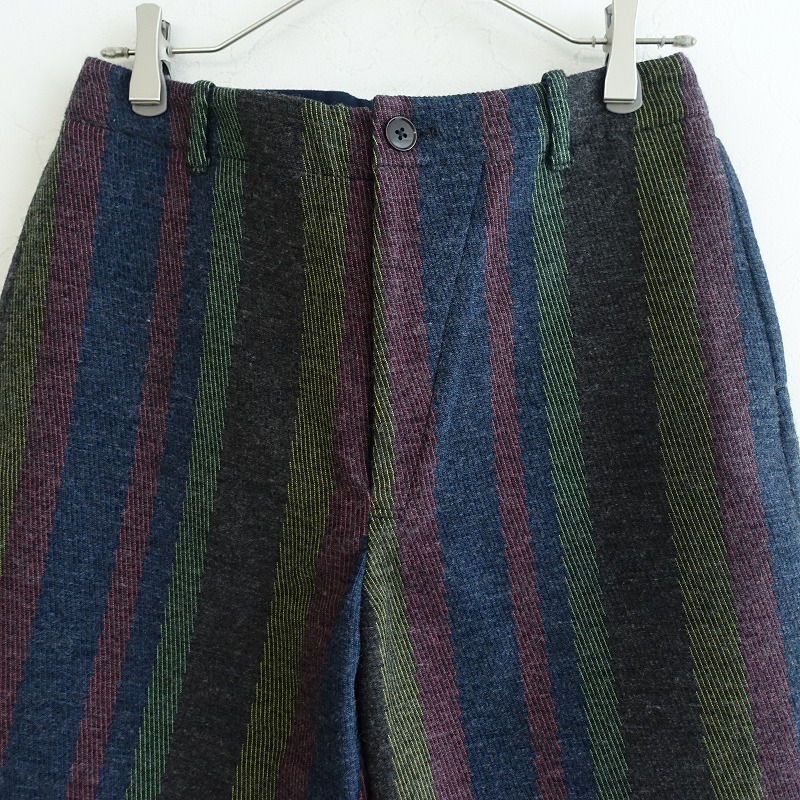mina perhonenのcolorful shadow マルチストライプパンツです。カラーはチャコールの微起毛地ベースで、イエロー・グリーン・ピンク・ブルーなどのマルチストライプ柄のステッチがあしらわれております。ボタンとジッパーで着脱でき、両腰&両ヒップにポケット付きです。定価(メーカー希望小売価格) 35,700円の商品です。 |