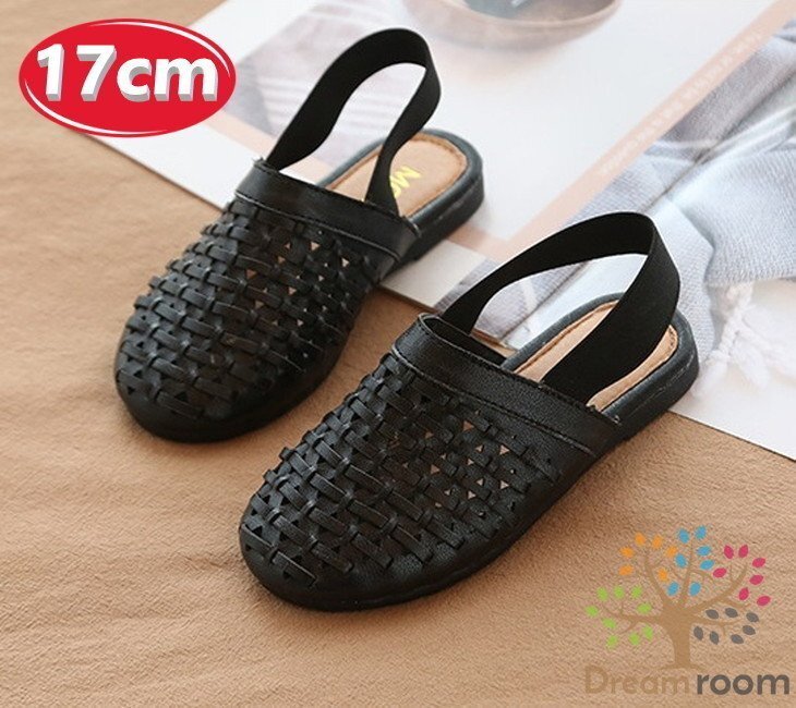 1スタ☆summer メッシュ編み込み スリッポン 【ブラック 17cm】 韓国子供服 キッズ ビーチサンダル 子供用 女の子