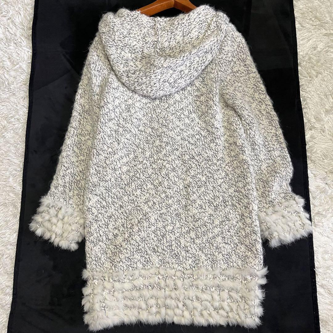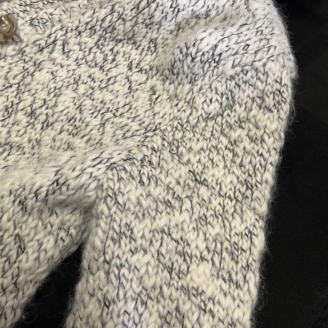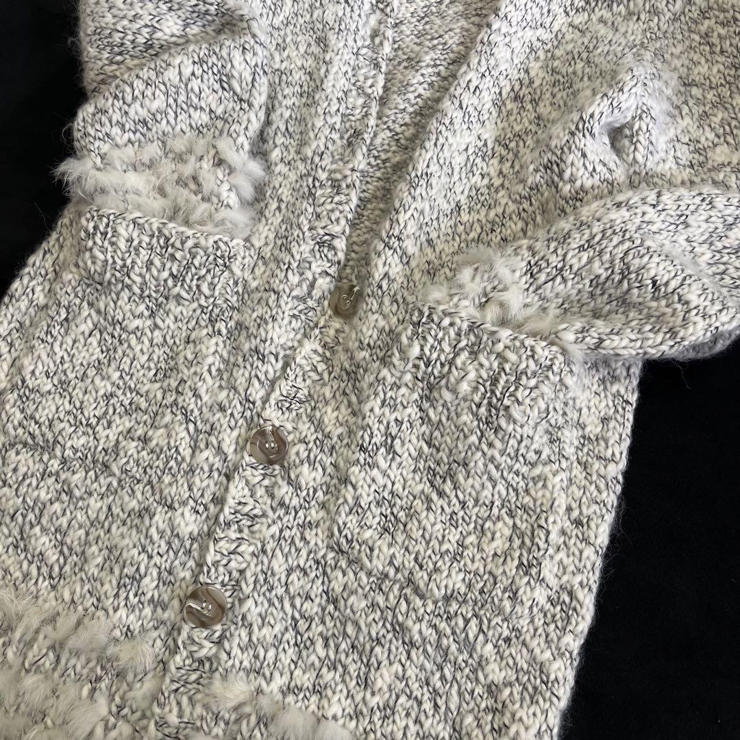 アルパカ47%のもこふわの極太毛糸で編んだミックス生地が使われ、裾周りそで周りには、ラビットファーが編み込まれております。