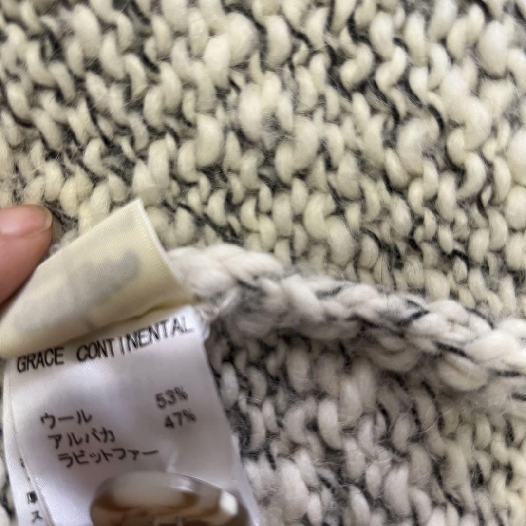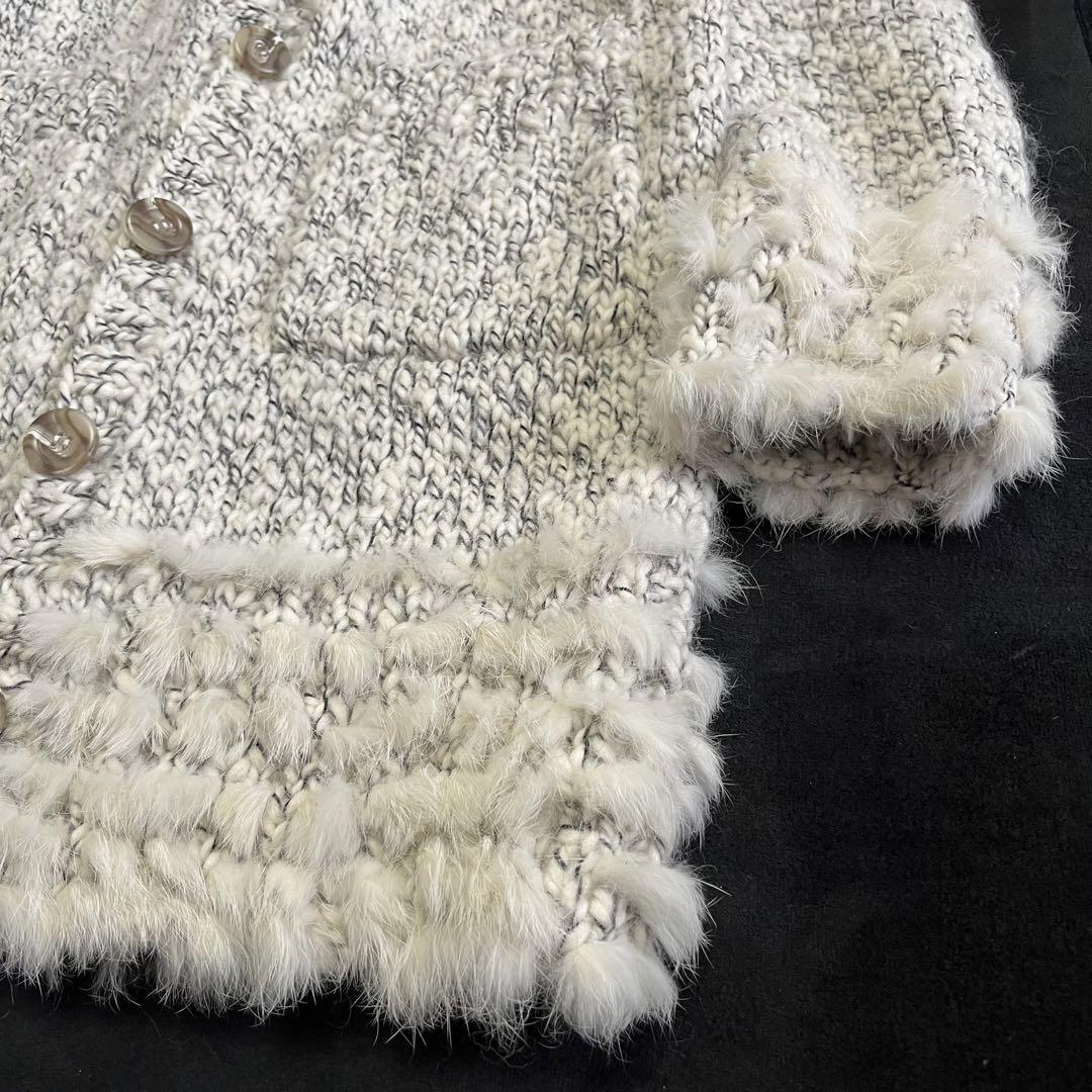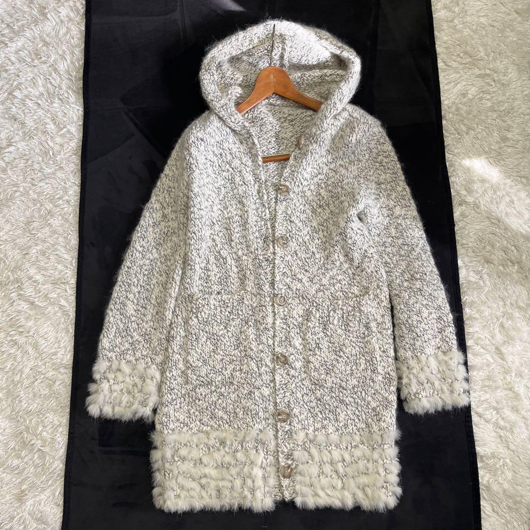 アルパカ47%のもこふわの極太毛糸で編んだミックス生地が使われ、裾周りそで周りには、ラビットファーが編み込まれております。