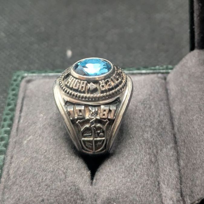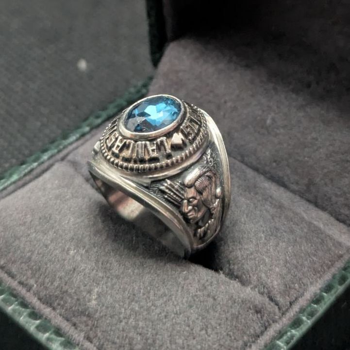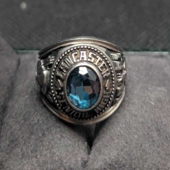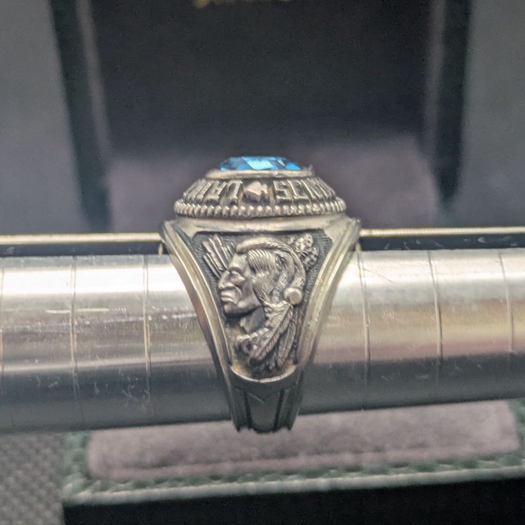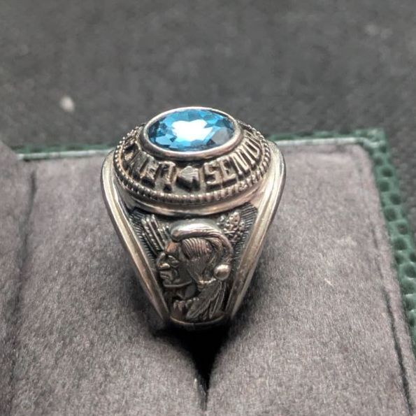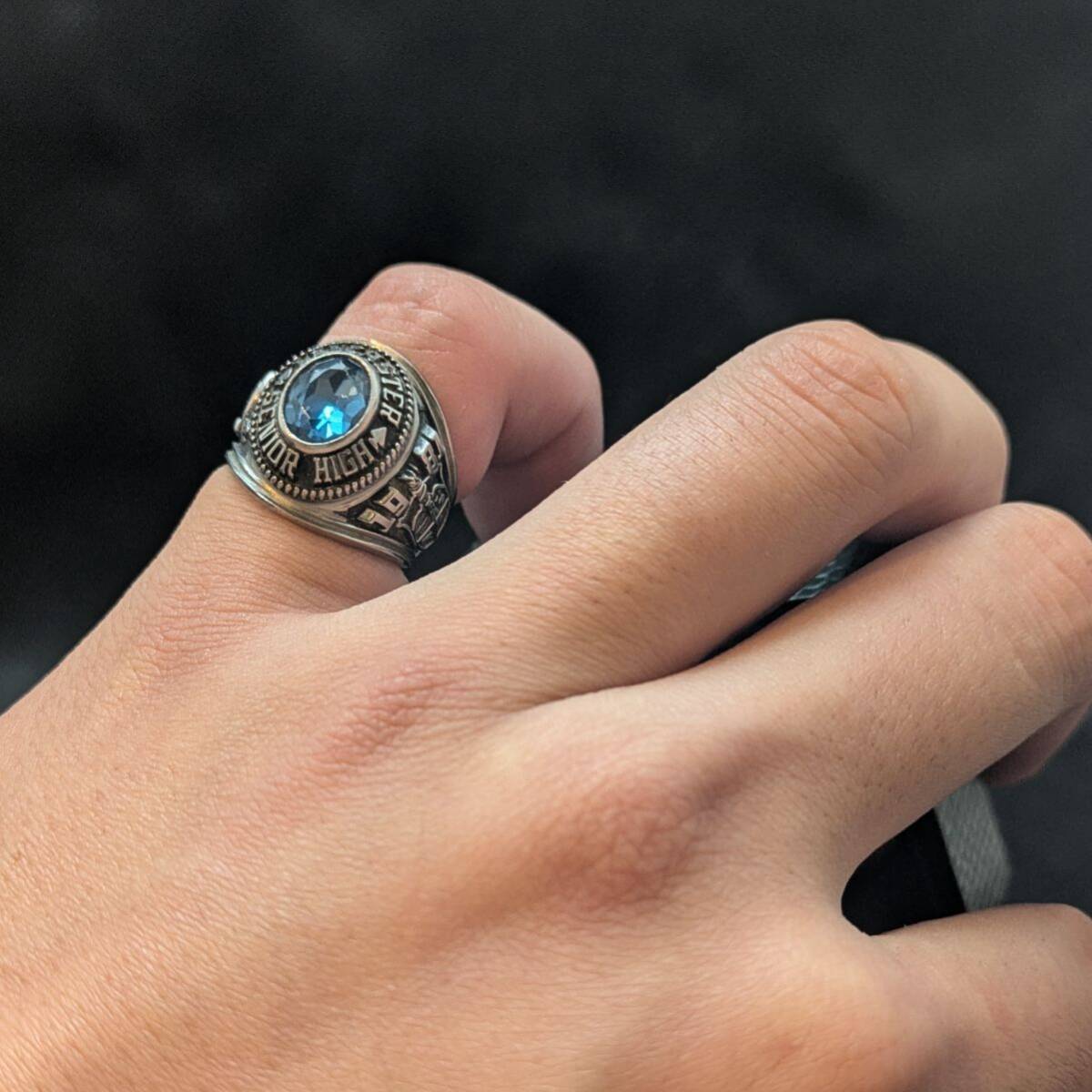 JOSTENS LTM 1981年 カレッジリング ブルー 青 クラスリング ヴィンテージ メンズ 大学 卒業記念 シルバー 指輪 アメリカ製 希少 1980年代