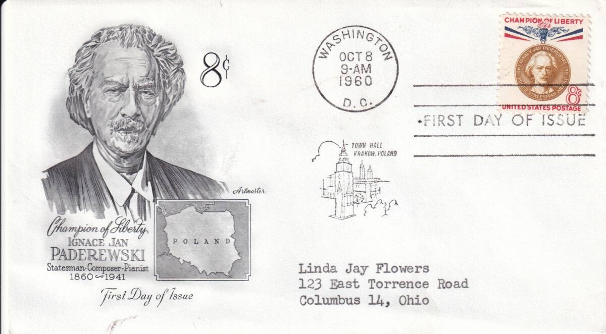 【FDC】著名人:イグナツィ・パデレフスキ(3)(1960年)(アメリカ)実逓 t4635