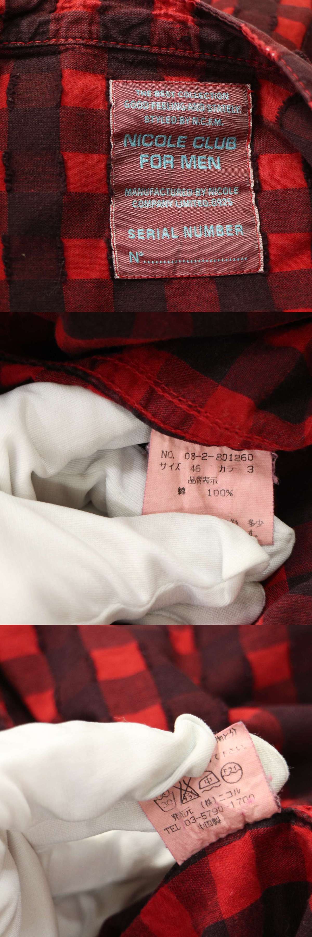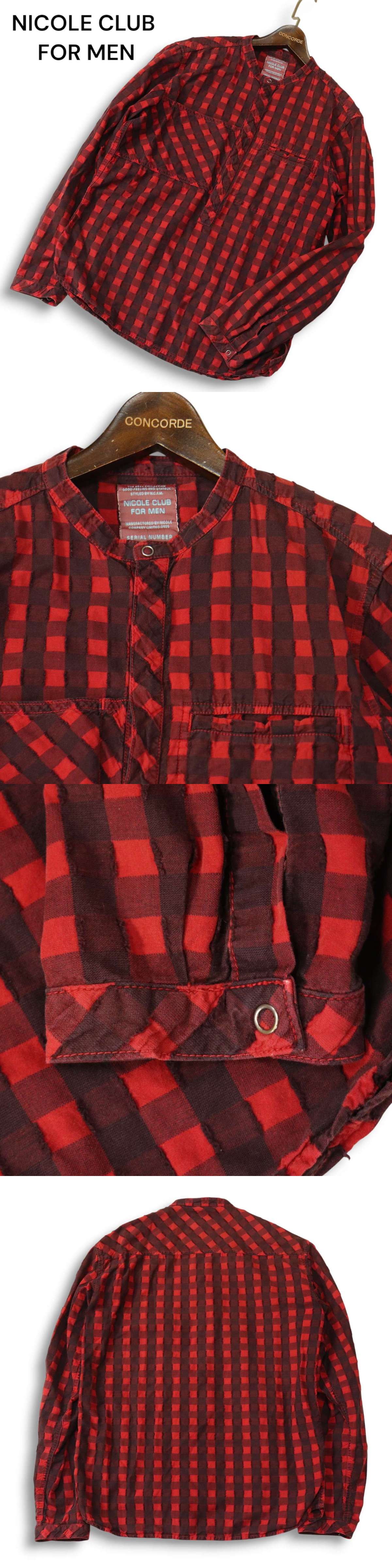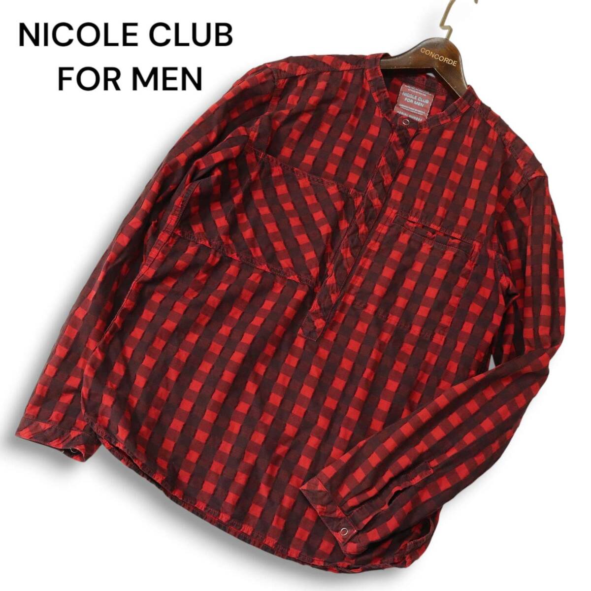 Y2K 00s★ NICOLE CLUB FOR MEN ニコルクラブ フォーメン 通年 長袖 バンドカラー チェック シャツ Sz.46 メンズ 赤