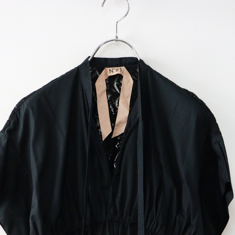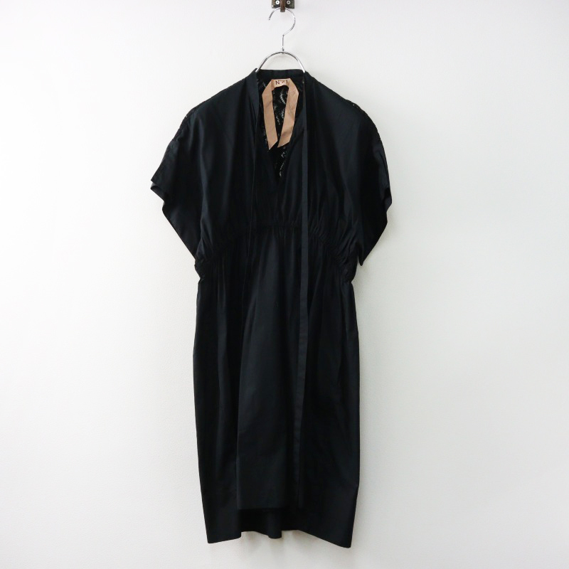 JPタグ N°21 ヌメロヴェントゥーノ バックレース切替 フロントギャザーワンピース 38 ブラック ┃ミニドレス【2400014567649】