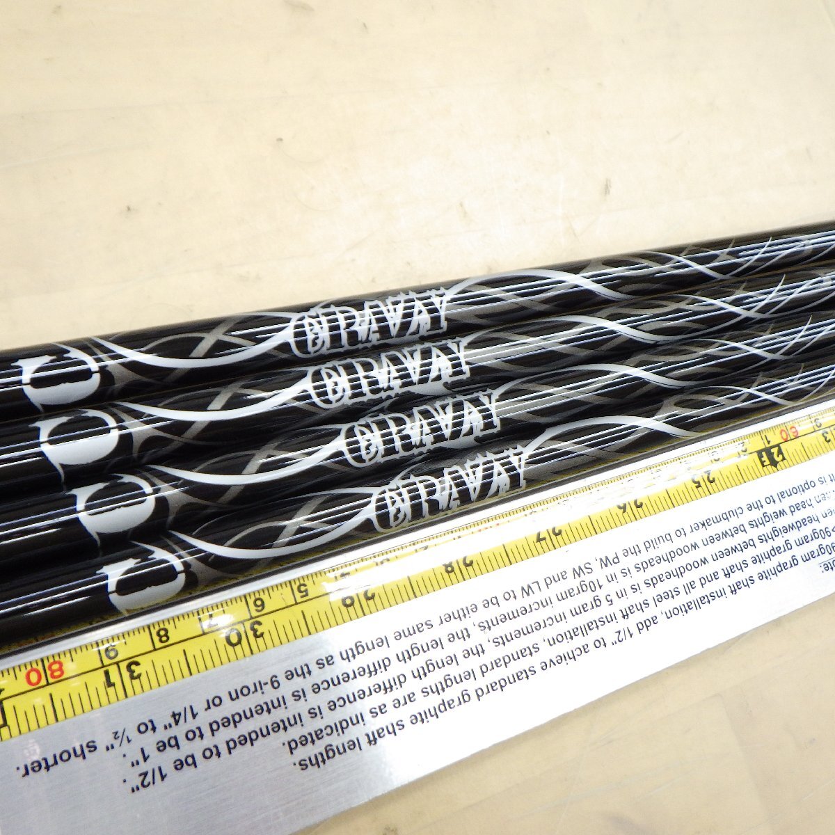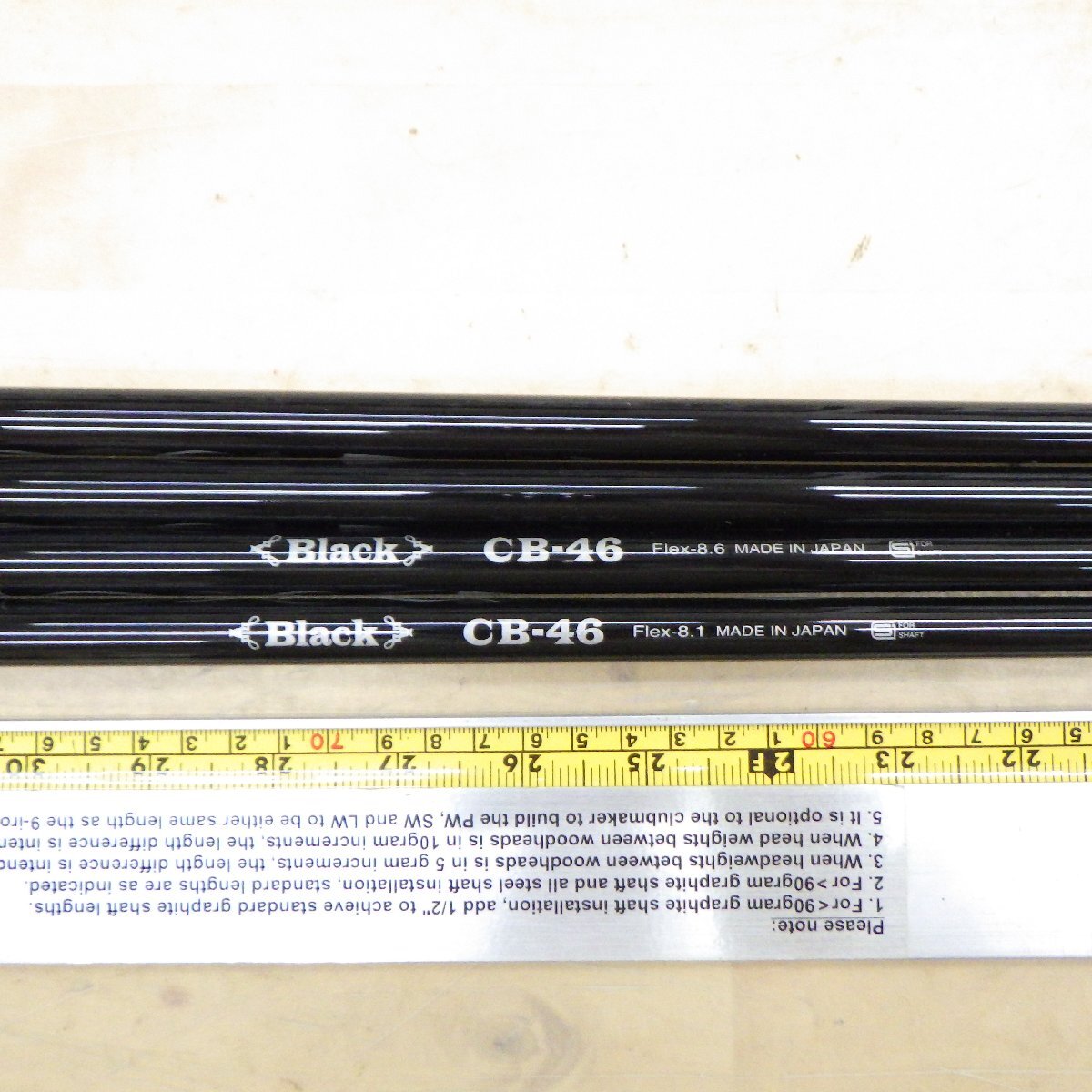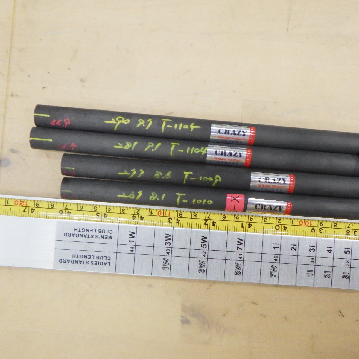 シャフト種類硬さ | 6.2 = R 6.7 = SR 7.2 = S 7.7 = SX 8.1 = X 8.6 = XX 9.1 = XXX (3X) 9.7 = XXXX (4X) |