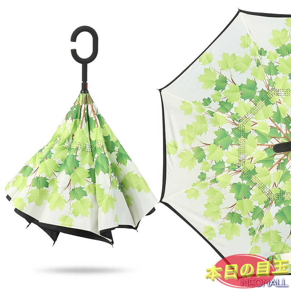 1円~ ☆ 逆折り式傘 【630-G】日傘 雨傘 自動広ける 手離れC型手元 自立可能 二重 ビジネス用 車用 男女晴雨兼用 通勤 通学 柄 模様
