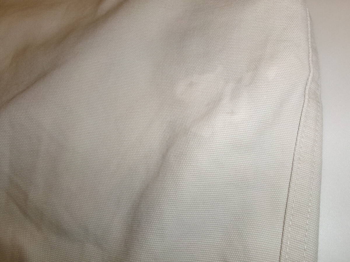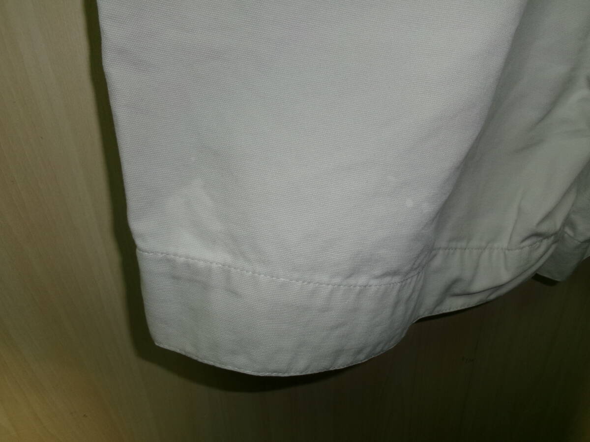 両腿と後ろ左ウエスト、左裾付近にブリーチ跡のような色抜け箇所が見られます。左サイドポケット中袋裏地にシミがあります。着用感はそこそこあります。その他に、汚れ、傷は特にありません。