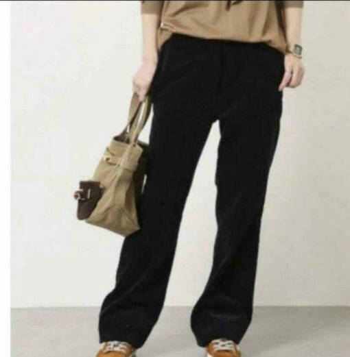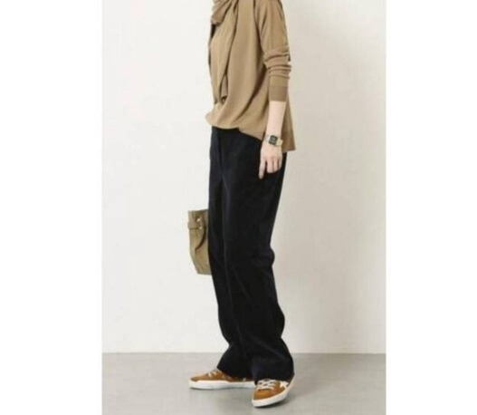 とても脚が綺麗にみえるワイドストレートのコーデュロイパンツ。