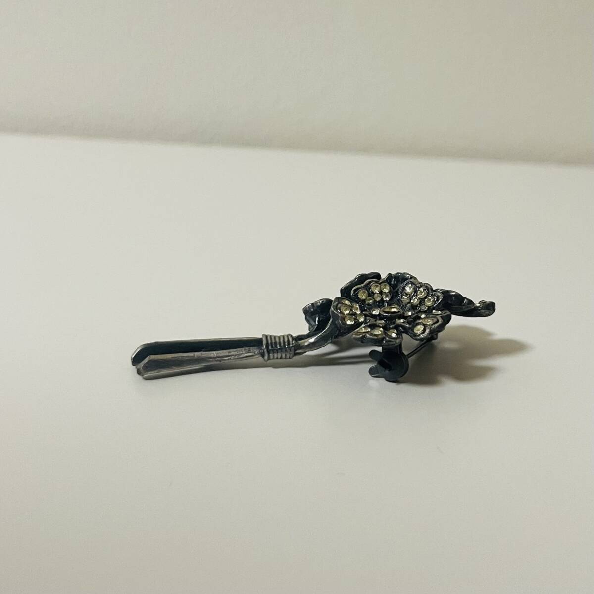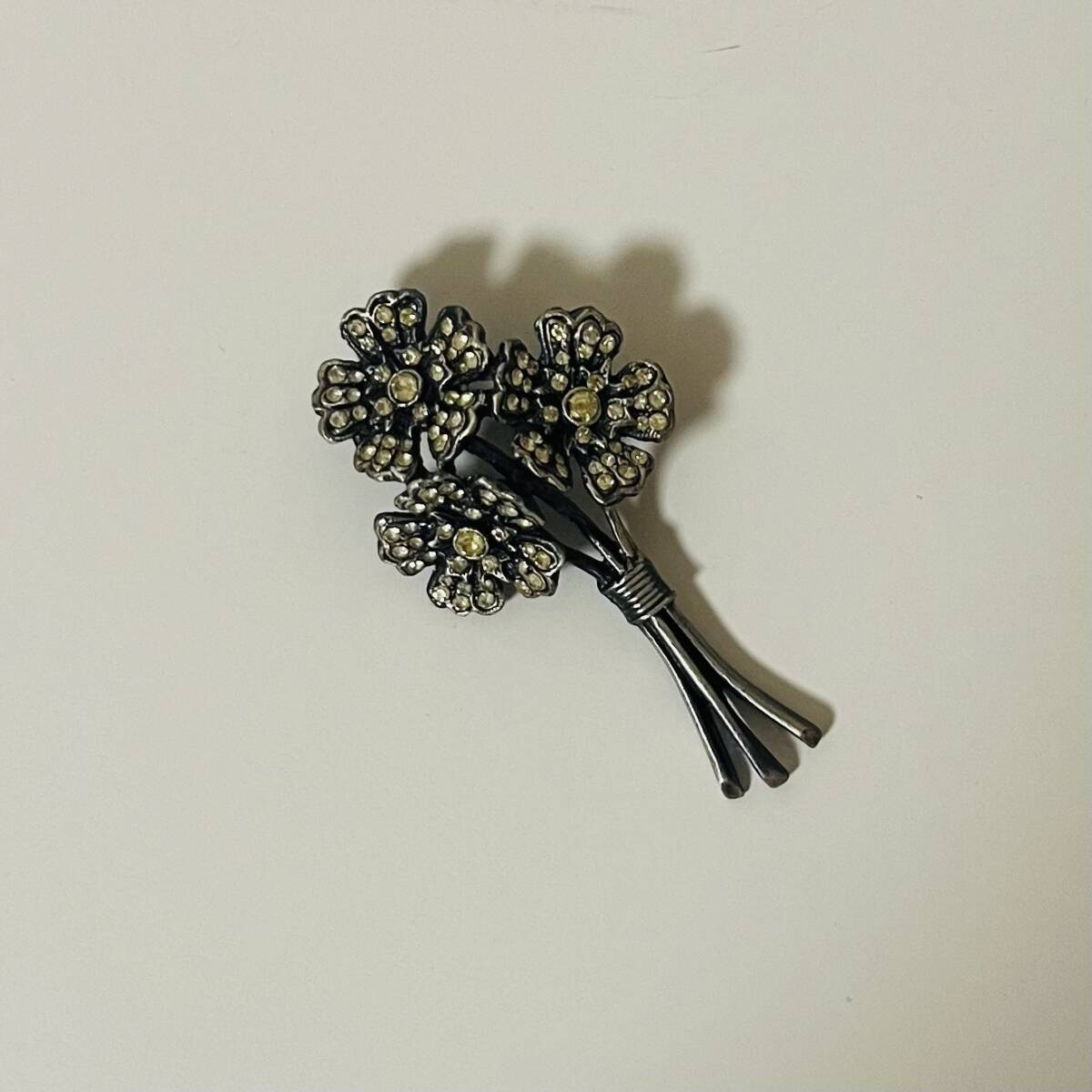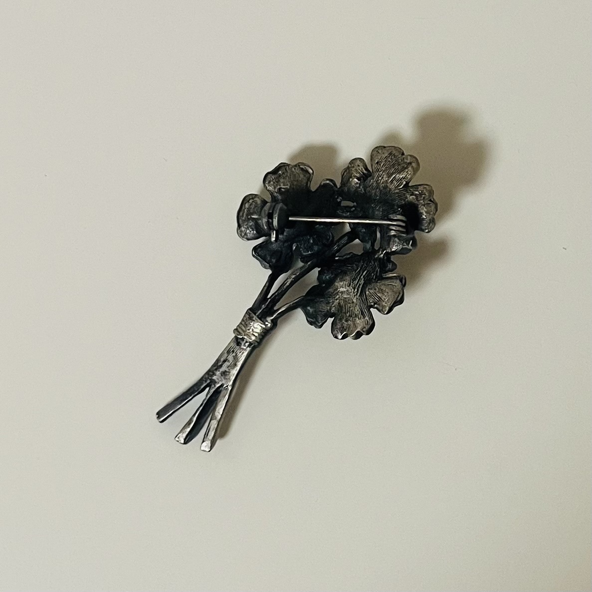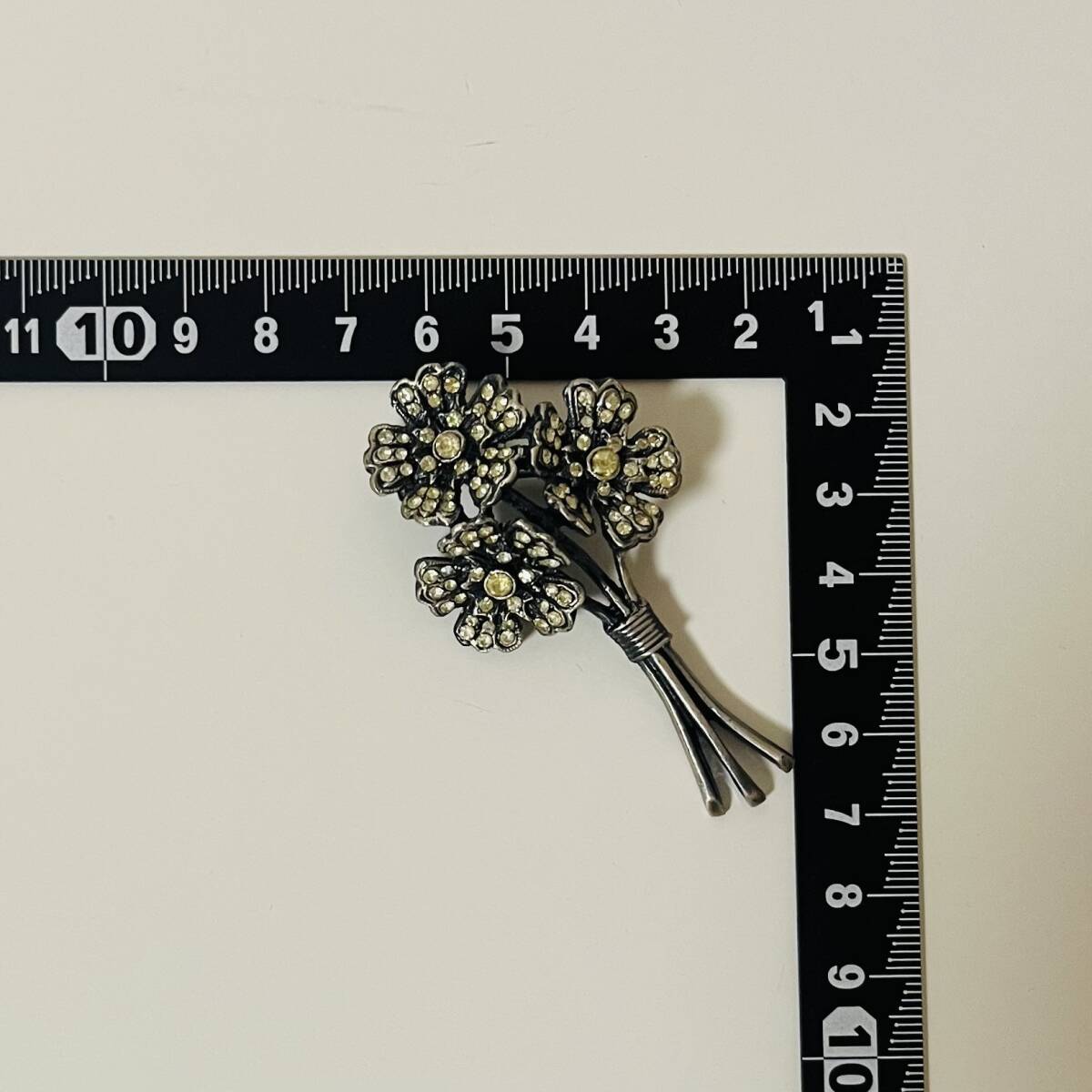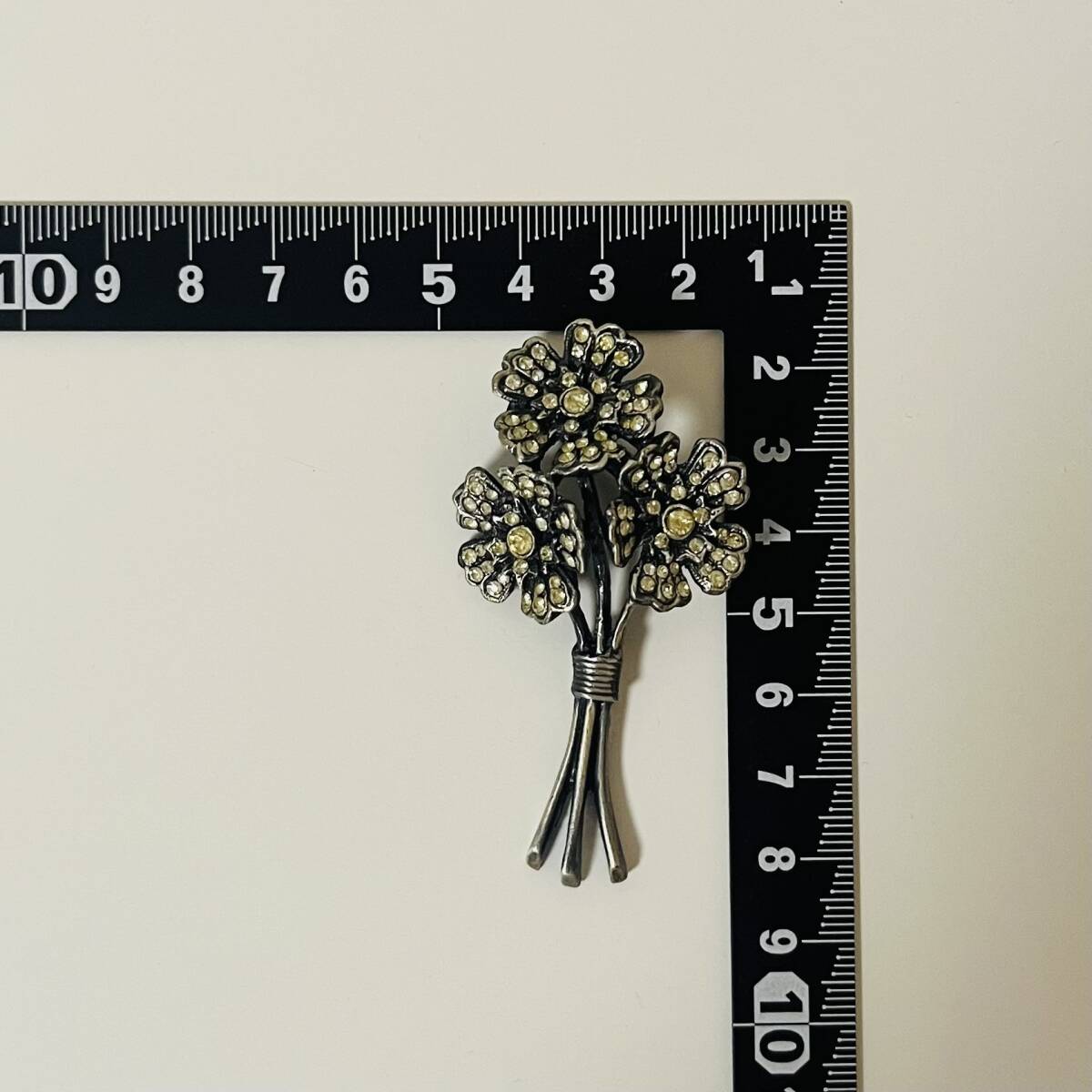 250 アンティーク ビンテージ アクセサリー ブローチ 未使用保管品! シルバーカラー ラインストーン 花 フラワー 花束 海外製