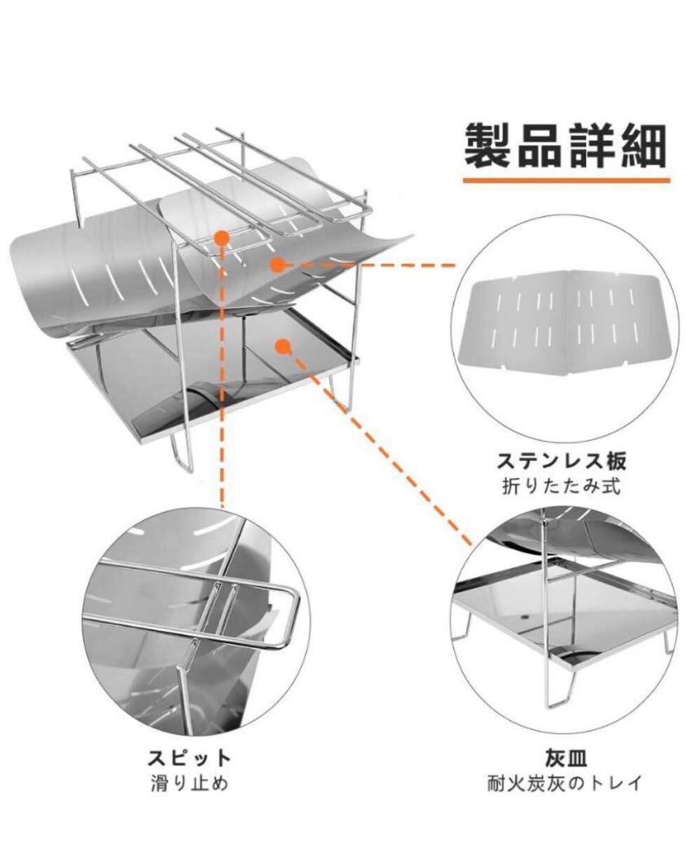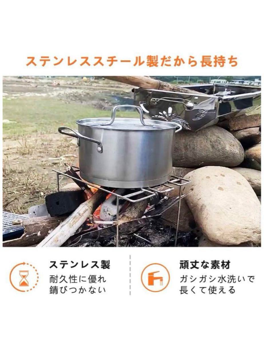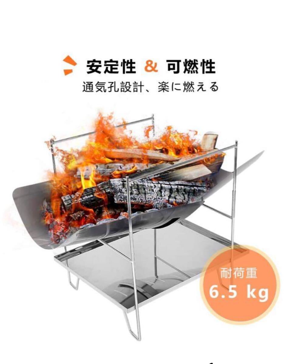 【しっかり構造&高温耐性】ステンレス製支柱、丈夫で長持ちします。組み立てた後、テントとしっかり結合して、木材、木炭を置いても傾倒しません、構造は非常に安定、耐荷重は6.5 kgに達します。 超大容量の本体に一回で沢山の薪を燃やせて、焚き火の時間を最大限に過ごすことができます。バーベキューコンロとしても行けます。
