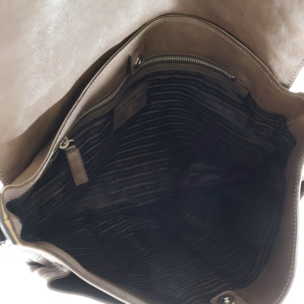 PRADA プラダ メッセンジャーバッグ ショルダーバッグ ブラウン×ブラック シルバー金具 レザー ロゴ
