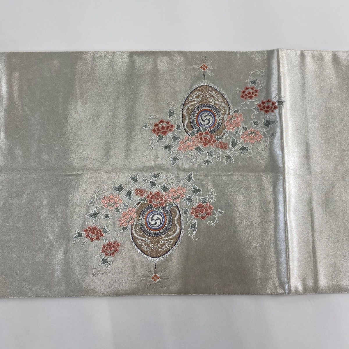 | 袋帯 逸品 長嶋成織物 落款 瀞銀錦 由水十久監修 麒麟児 金銀糸 箔 銀色 お太鼓柄 正絹 【中古】 |
