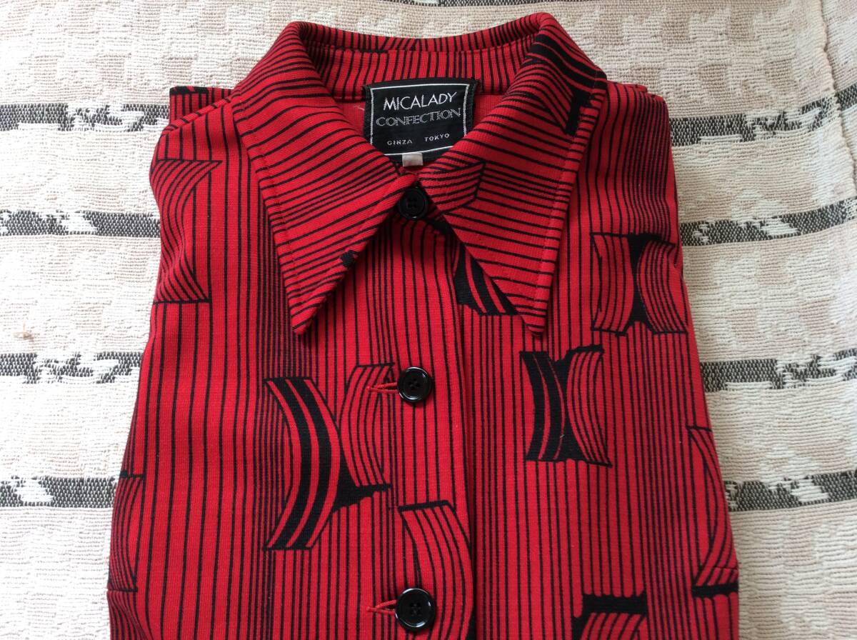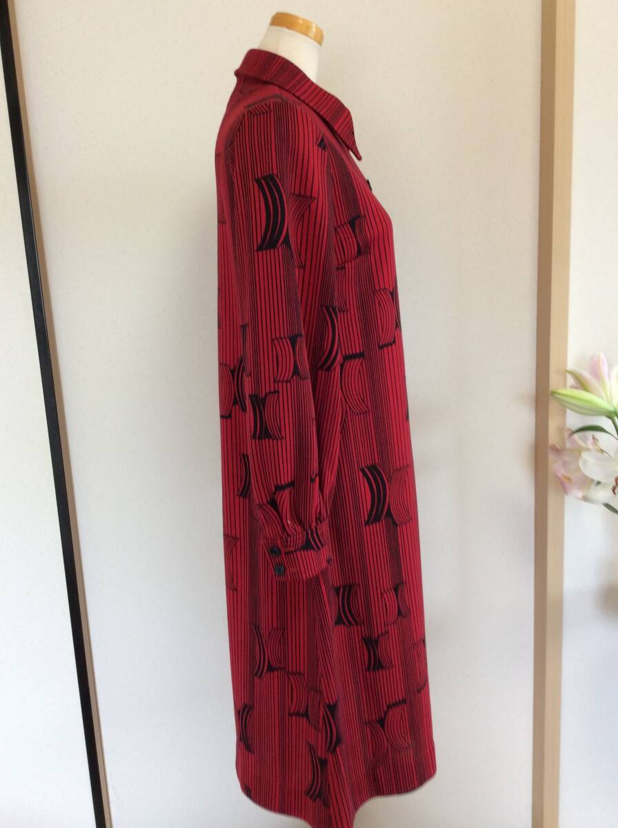 即決 古着店購入 ミカレディ 長袖赤ワンピース 女性13号 レトロ系ワンピース 付属ベルト無し 定形外郵便込 8月16日初出品