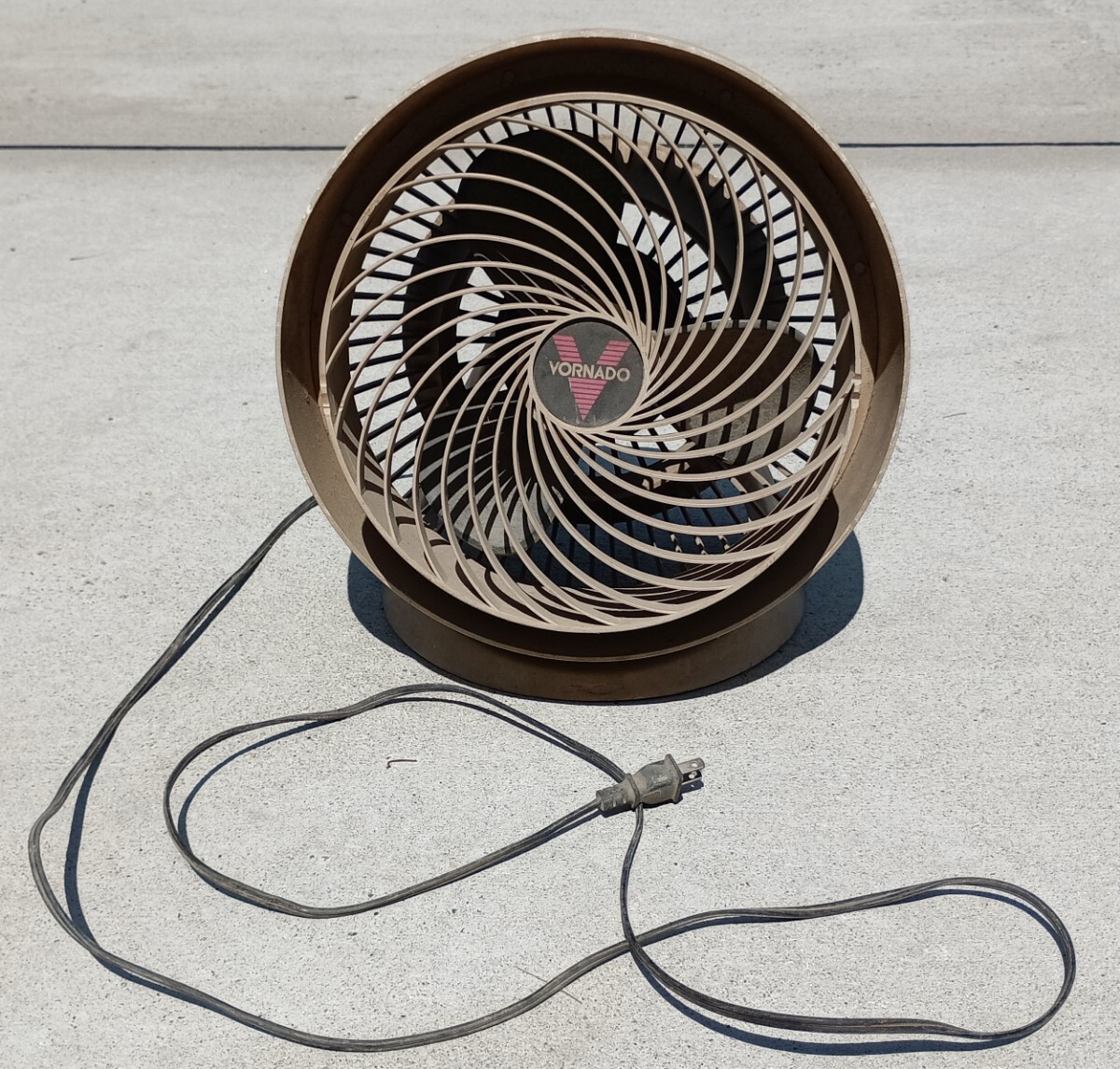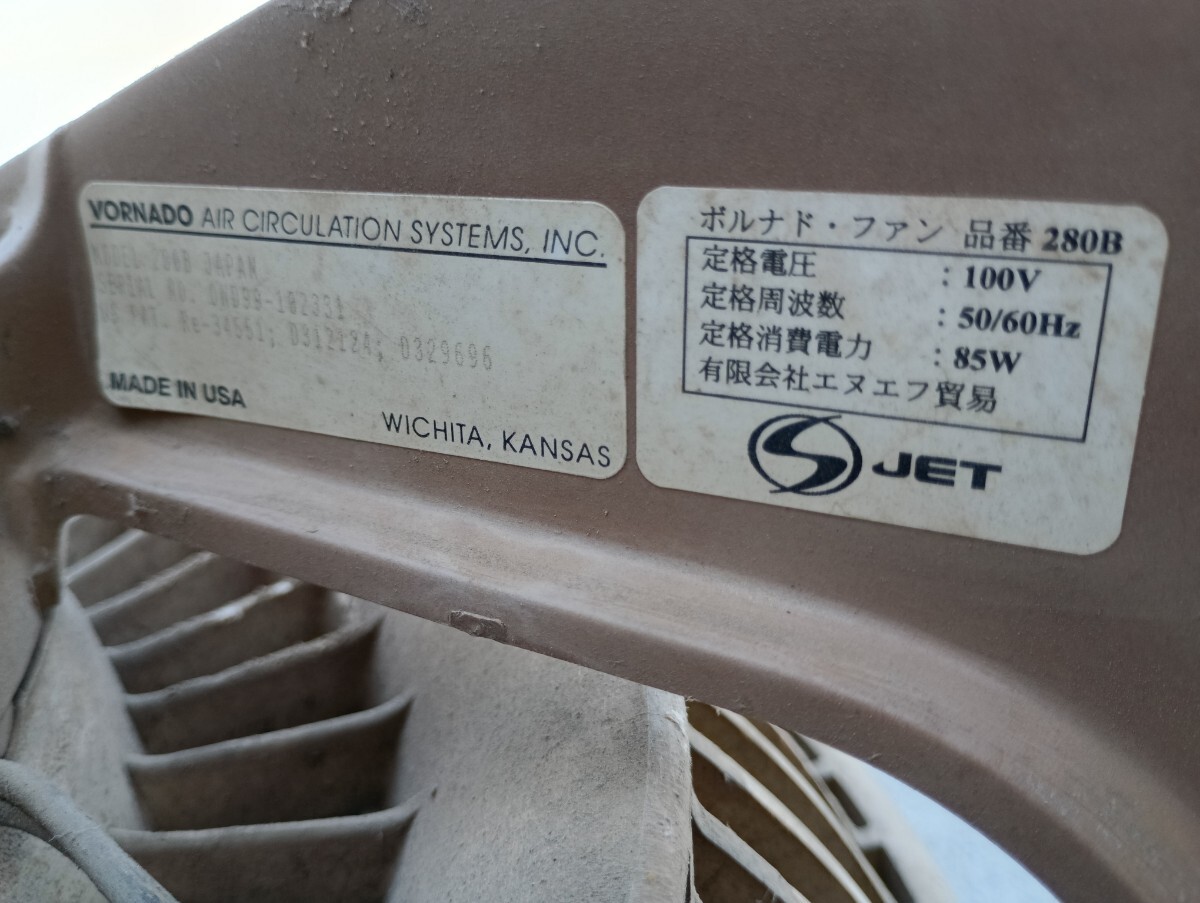 外作業で使っていました。普通に使えます。サイズ ファン約28cm 高さ約38cm 横幅約35cm 奥行き約34cm。キズ・汚れ・ホコリなどあります。発送時多少清掃して発送致します。わかる範囲で質問受け付けます。ノークレームでお願いします。ヤフネコ120サイズにより発送(\1600~\2120)。