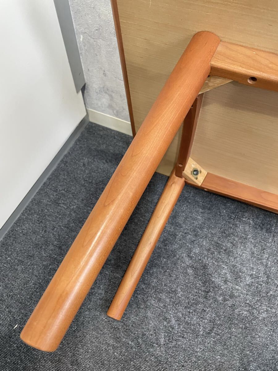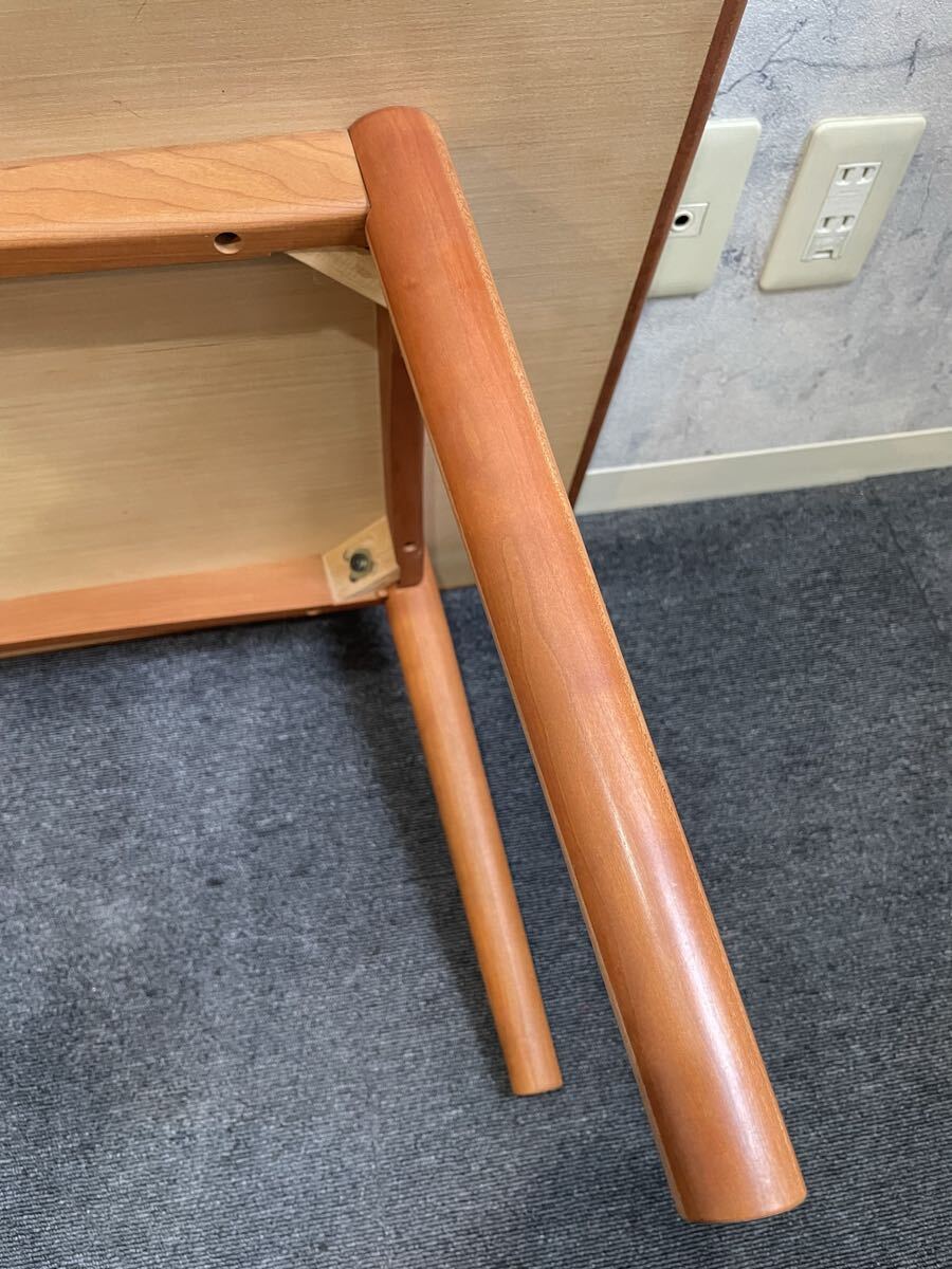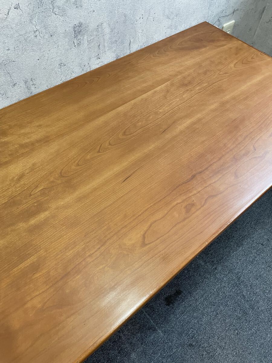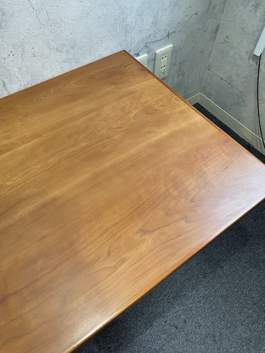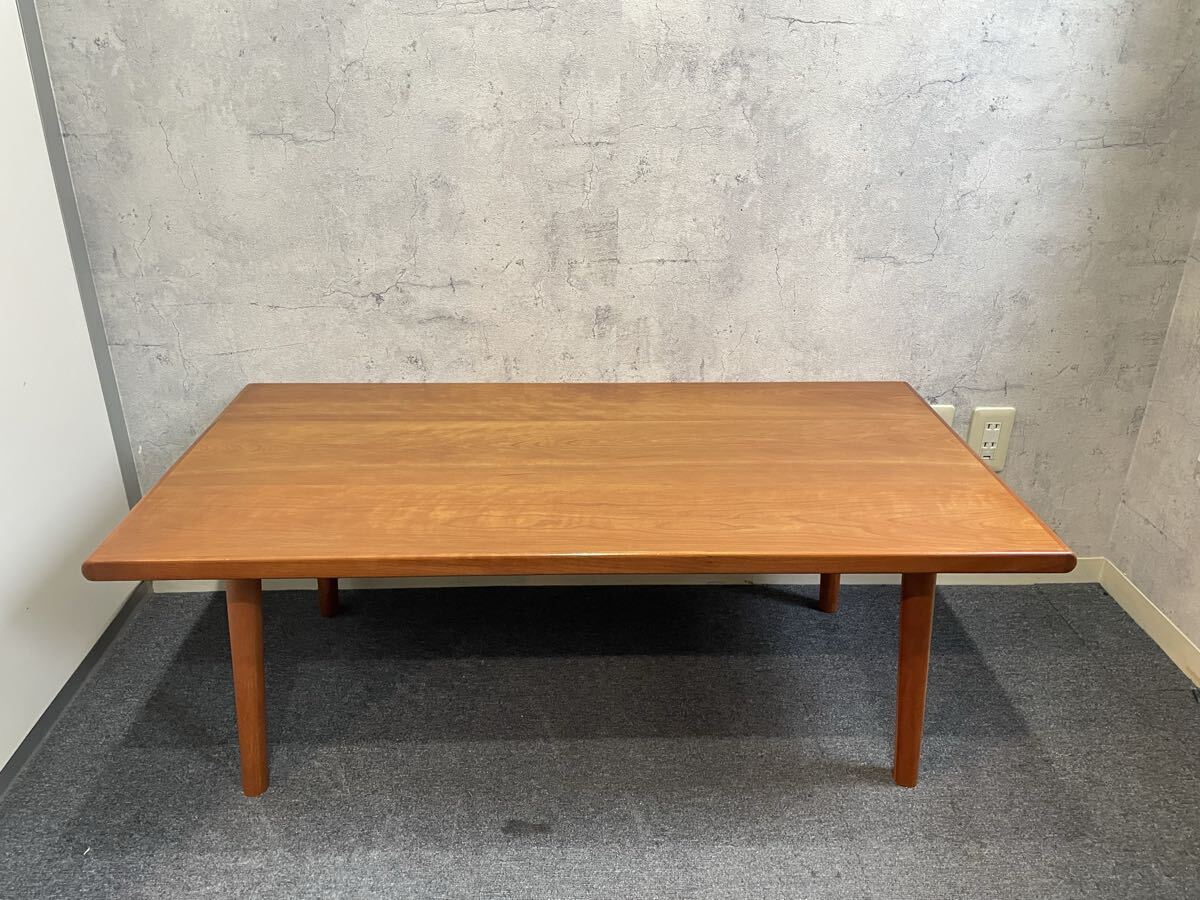 チェリー材を使用した、カジュアルなシーンによく合うリビングテーブル。少し丸みのあるデザインが特徴です。