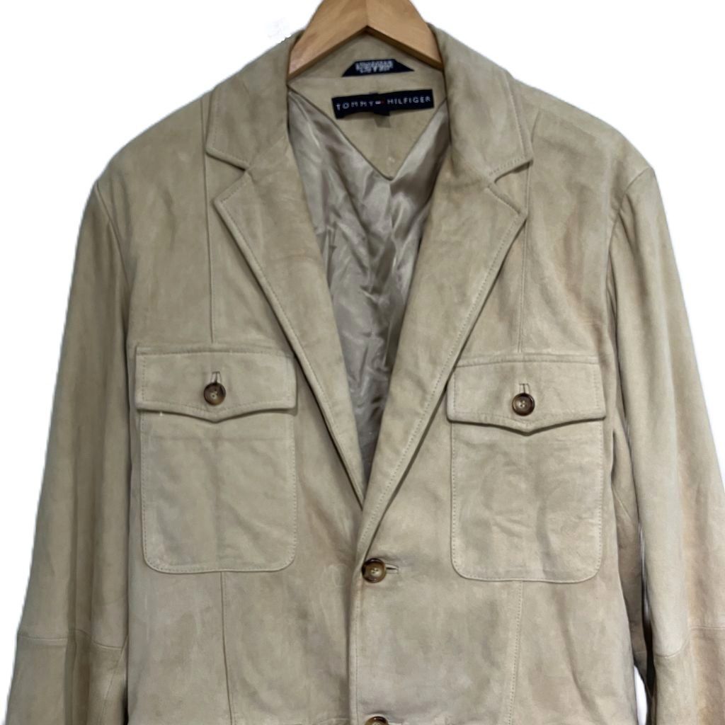 トミーヒルフィガー TOMMY HILFIGER テーラードジャケット ブレザー スエード 山羊革 シングル 2B M ベージュ 113-611208-620 ■MET1