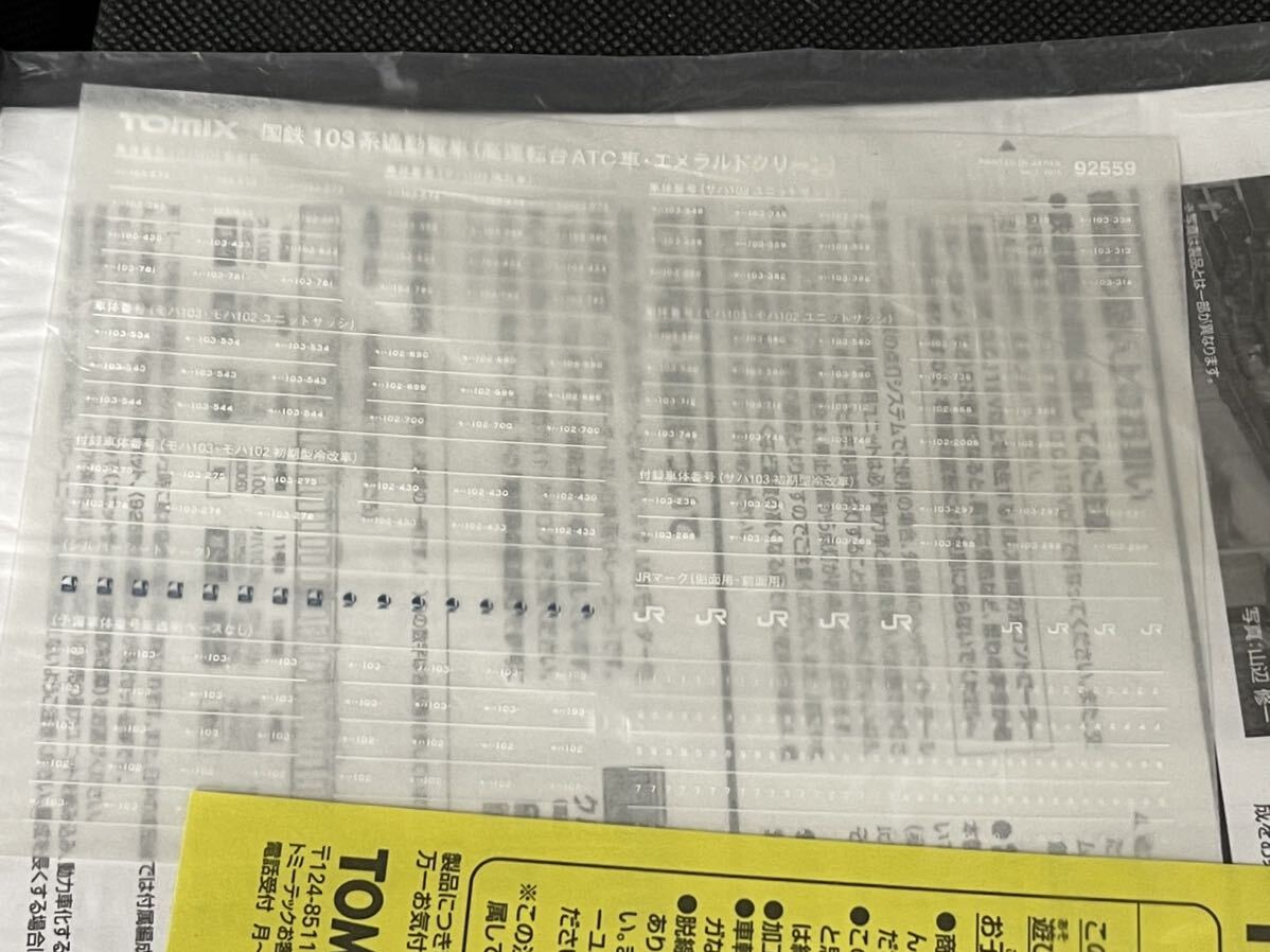 送料無料 中古 ばらし TOMIX トミックス 92559 103系 高運転台 ATC車 エメラルドグリーン 常磐線 成田線 より インレタ 説明書