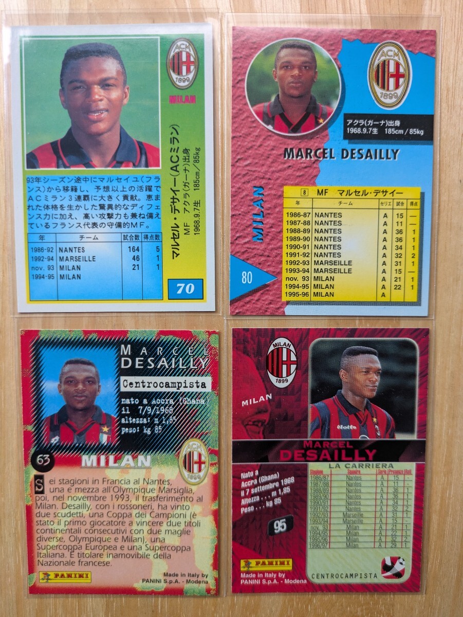 マルセル・デサイー カルチョ 95 96 97 98 サッカー カード 4枚 セット イタリア セリエA ACミラン PANINI パニーニ Calcio Marcel Desailly フランス代表 になります。