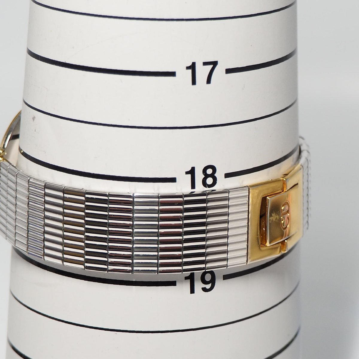 ディオールのゴールド文字盤のメンズ腕時計です。 メンズ・レディースどちらでもご使用いただけるデザイン・大きさかと思います。 稼働品で除菌クリーニング致しておりますのですぐにご使用いただける状態です。 ☆管理番号:F719 ☆稼働品 ☆クリーニング (超音波洗浄+磨き作業+エタノール除菌クリーニング) ☆防水:- ☆ムーブメント:クォーツ ☆素材:ステンレス ☆電池交換:稼働品のため電池交換致しておりません。 【サイズ】 ◇ケース幅約30mm×30mm(リューズ含まず) ◇厚さ約5mm ◇腕回り約185mm 【カラー】 ◇文字盤:ゴールド ◇ケース:シルバー ◇ベゼル:ゴールド ◇ベルト:シルバー・一部ゴールド 【状態】 ◇A ☆ケース:ほぼキズなし ☆ベゼル:キズなし ☆ガラス:キズなし ☆裏蓋:若干薄キズ ☆ベルト:ほぼキズなし ☆その他特記事項:- 【付属品】 ◇本体のみ ※公安委員会の古物商許可証の元古物市場(コメ兵、ブランドオフ、エコリング等)にて購入したものです。 全て【正規品保証】致します。 過去1度も経験はございませんがコピー品であった場合返品返金対応をさせていただきますので安心してご購入下さい。 |
