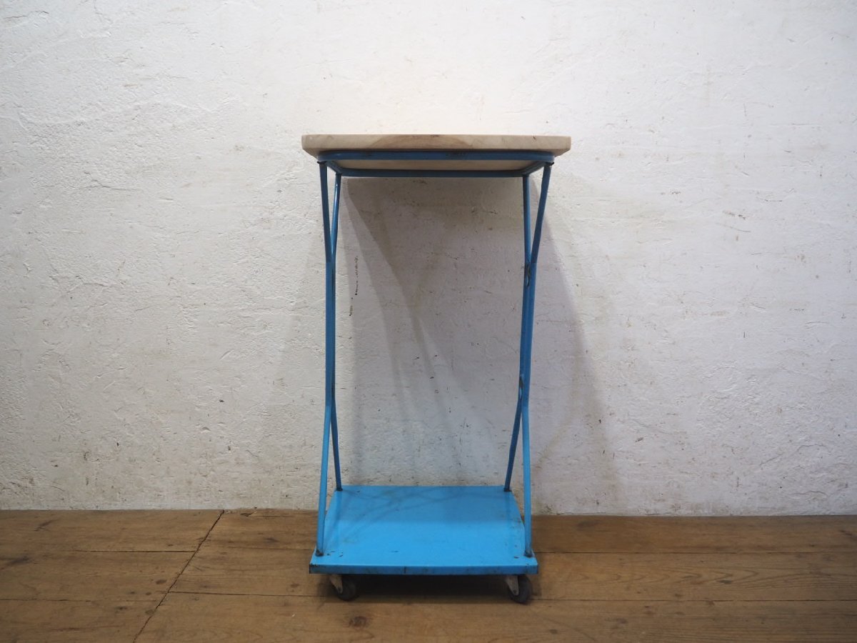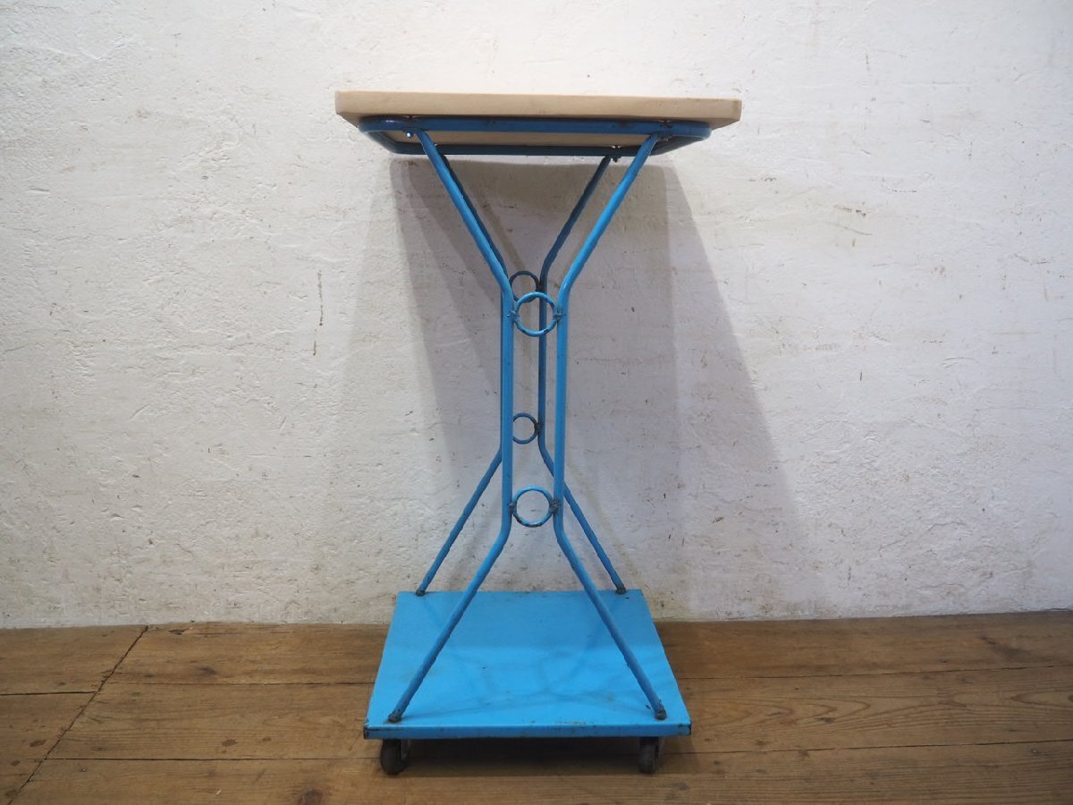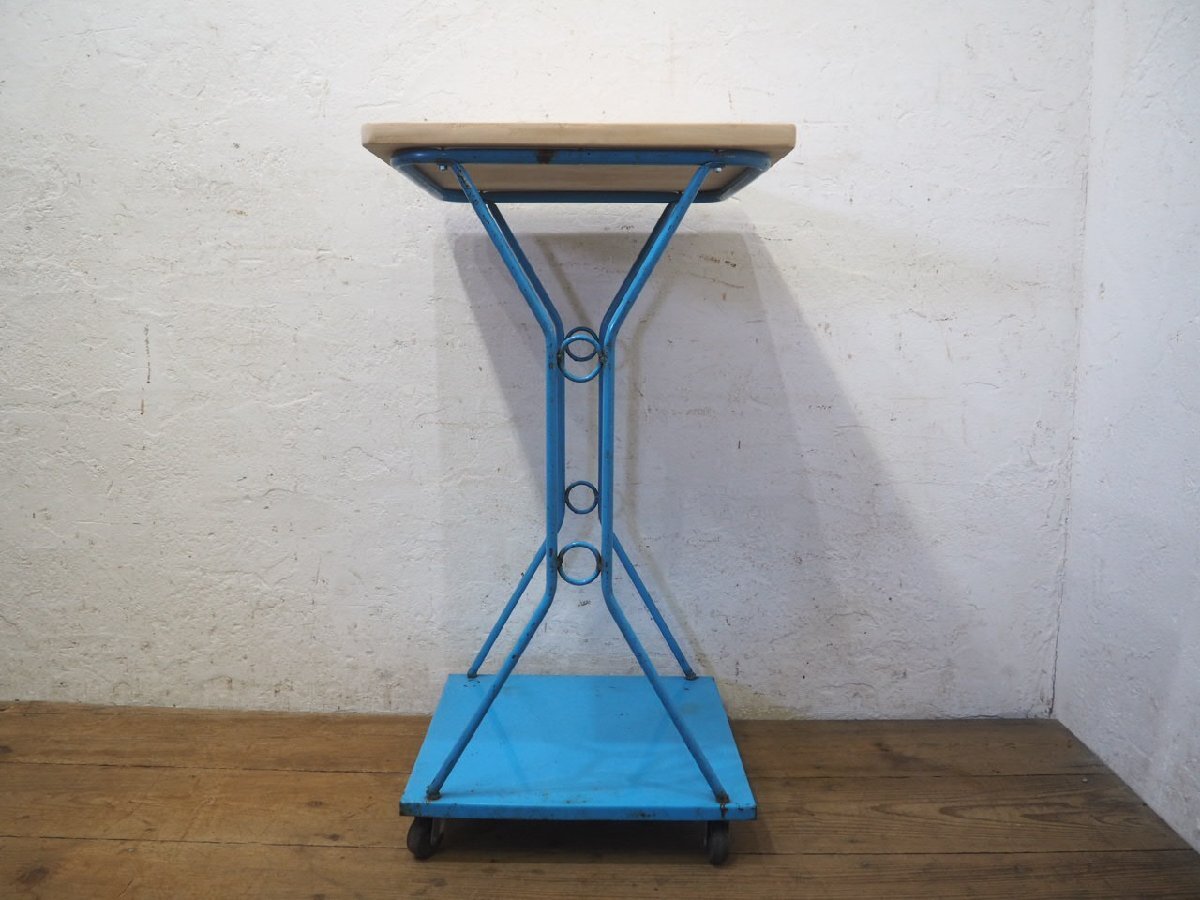 タM0725◆天板W45cm×D45cm◆キャスター付き◆ヴィンテージ◆古い鉄脚サイドテーブル◆工業系 作業台 デスク インダストリアル レトロL笹4