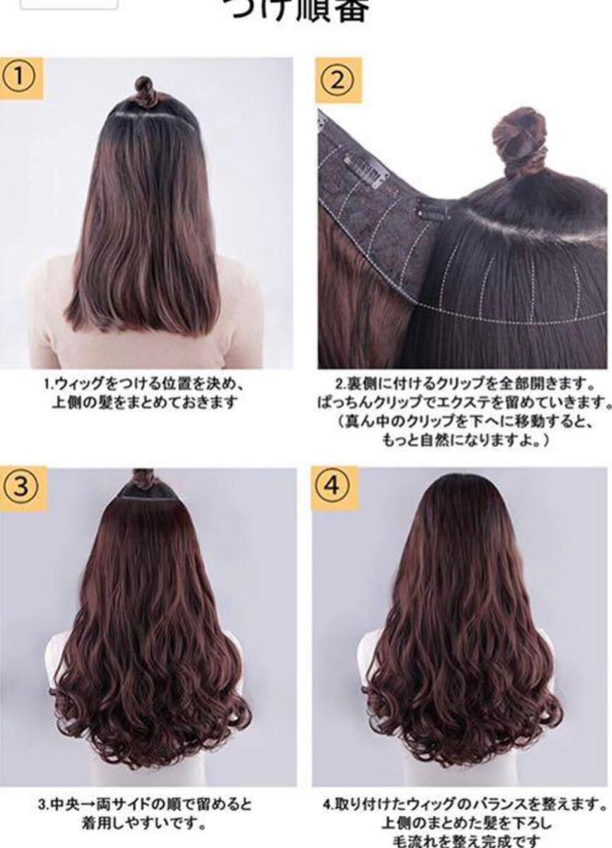 【通気性抜群】多段シャギー仕様は通気性が抜群、バッチン部分はより薄く、複数個付けでも重くならないので地毛と馴染みやすい!五つのバッチクリップでしっかり固定、長時間つけても落ちない。