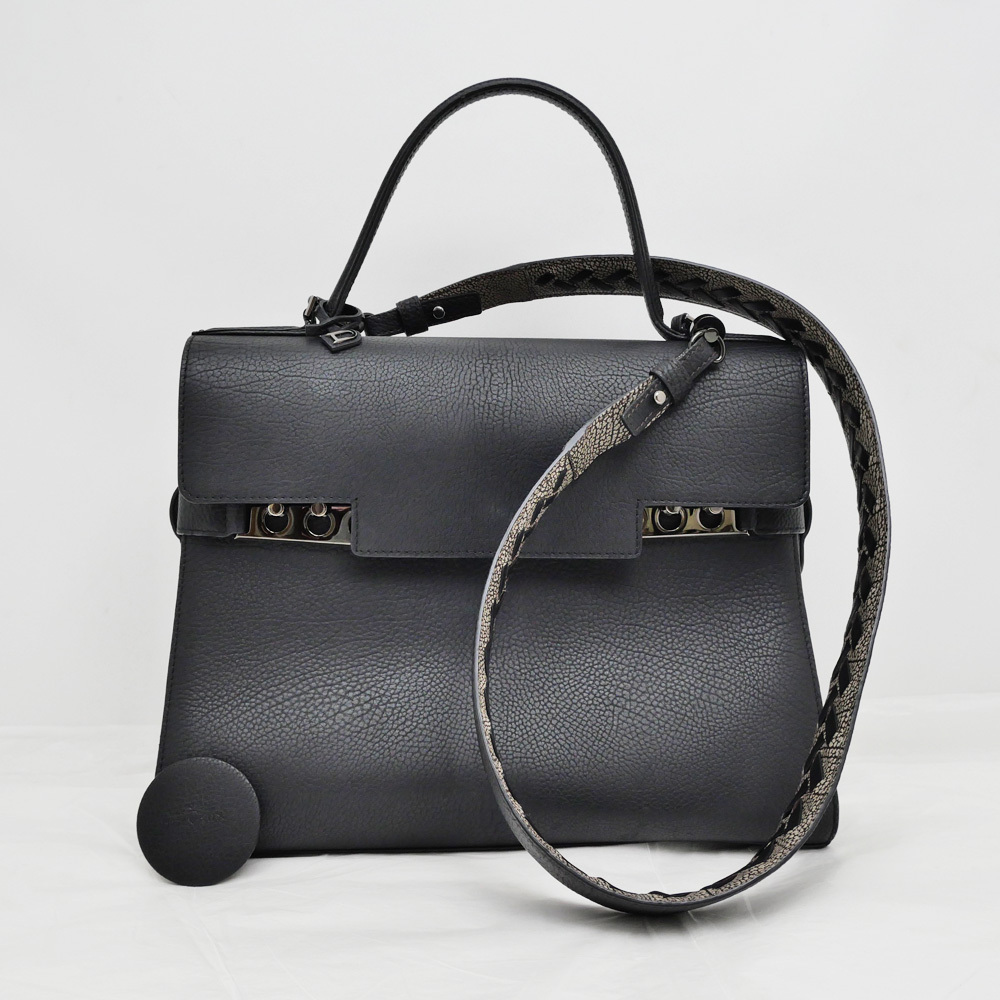 【名東】デルヴォー タンペートGM ブラック ハンド 2WAY ショルダーバッグ 黒色 レザー レディース その他