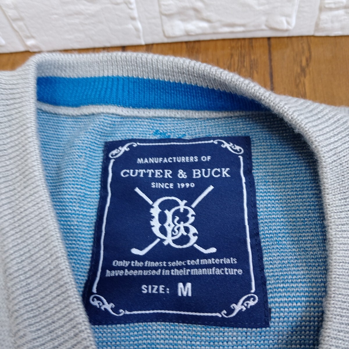 2147【中古】CUTTER&BUCK GOLF カッター&バックゴルフ ゴルフウェア 長袖Vネックセーター メンズサイズ M グレー/青
