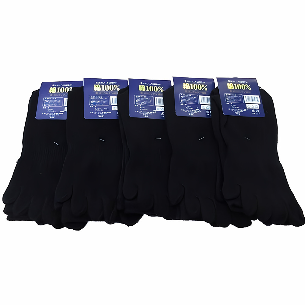 5本指ソックス 黒 5足セット メンズ size 24-26cm 夏は涼しく冬は暖かい 綿100%混素材 抗菌防臭加工 サポーター カカトつき