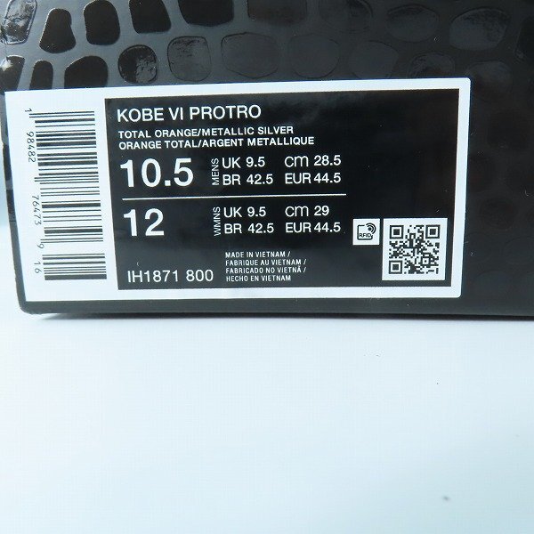 【未使用】NIKE/ナイキ KOBE VI PROTRO/コービー6 プロトロ トータルオレンジ IH1871-800/28.5 /080 | |||||||||||||||||||||||||
