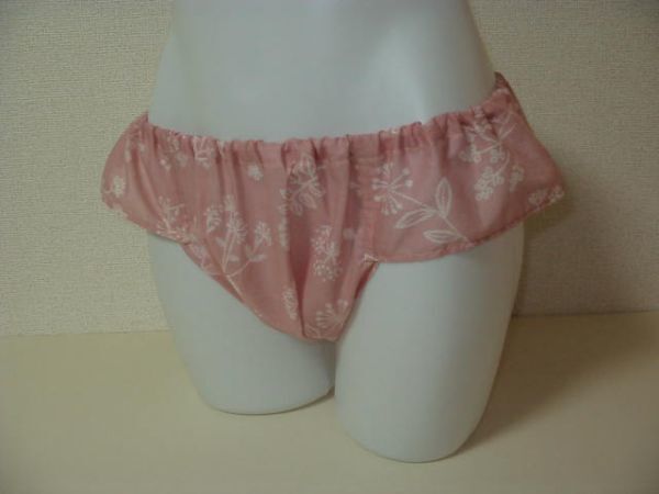 0485【クリポ追加送料無・同梱可】★フリフリ 渋 pink 花木 くすみ 綿ローン 女性 基本の  ふんどしショーツ ふんパン