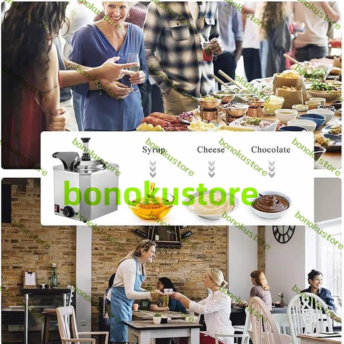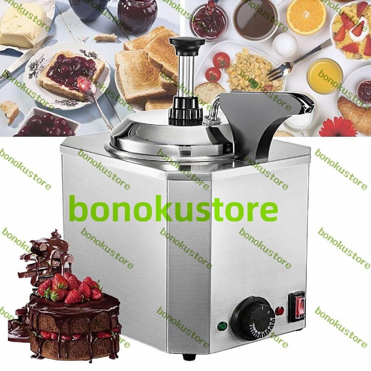 商品の説明 特徴: --このステンレススチール製の電気加熱ジュースポンプは、チョコレート、チーズ、チーズなどの固まりやすい食品を再加熱するために使用されます。食品が液体状態になるように、24時間保温できます。 --さまざまな温度制御ノブを使用して、さまざまなソース