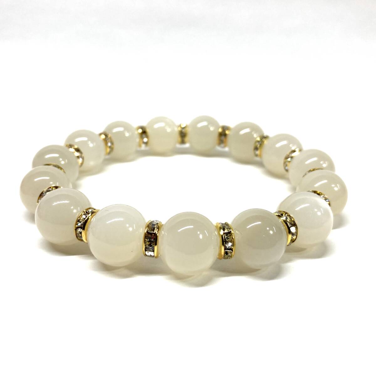 ムーンストーン パワーストーン ブレスレット 12mm 天然石ブレス (ゴールド) 数珠ブレス メンズ・レディース 男性 女性 幸運 開運 浄化♪