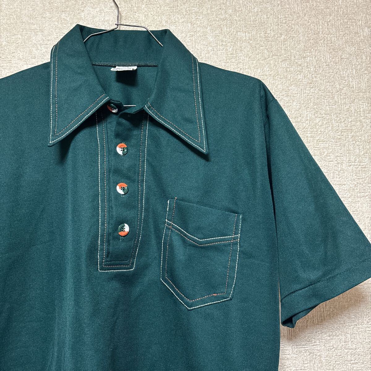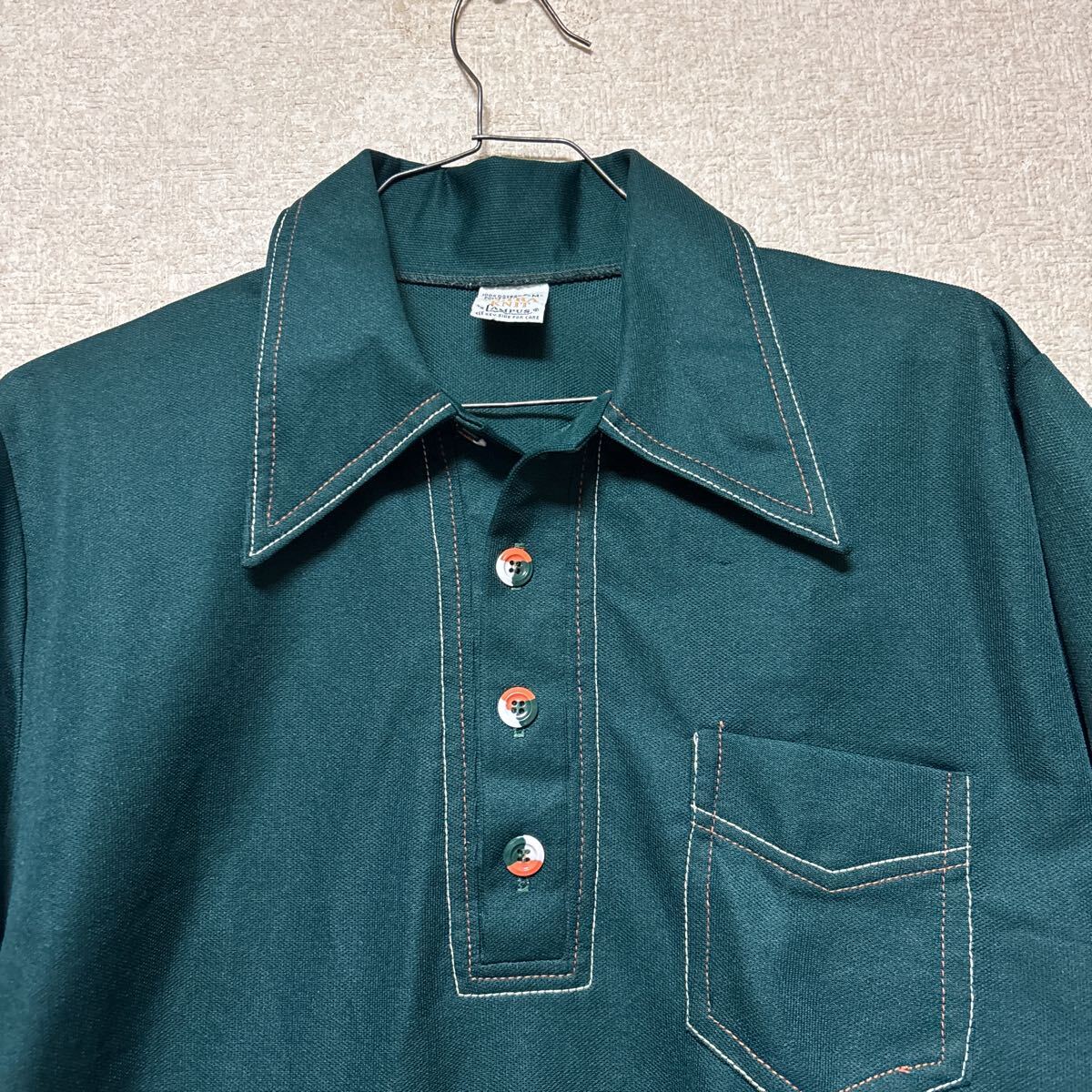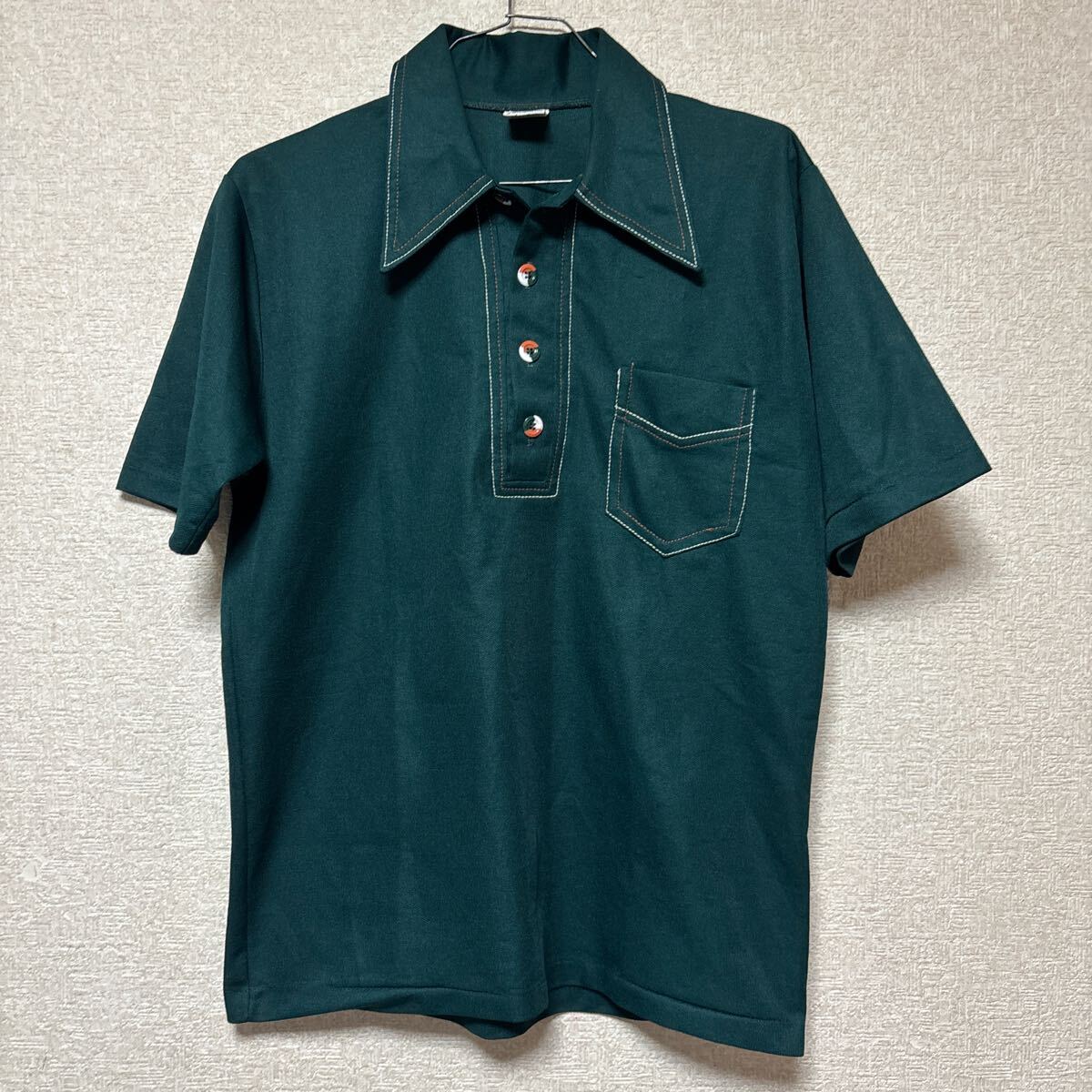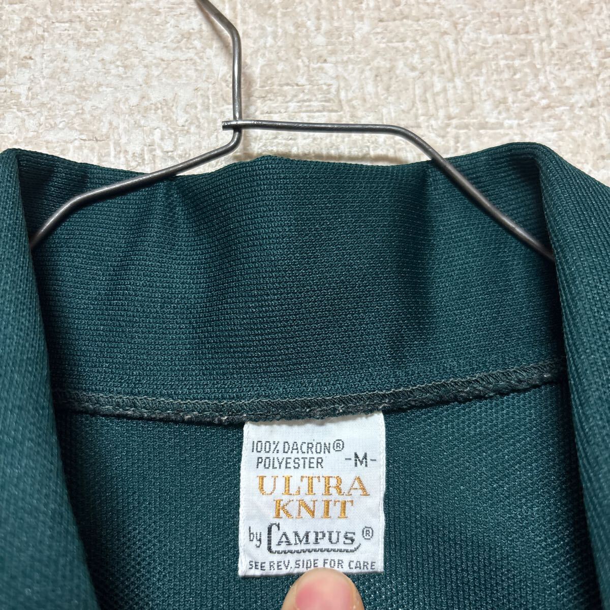 70s ULTRA KNIT by CAMPUS USA製 ビンテージ ポロシャツ ポリシャツ メンズMサイズ グリーン 3008-Uです。
