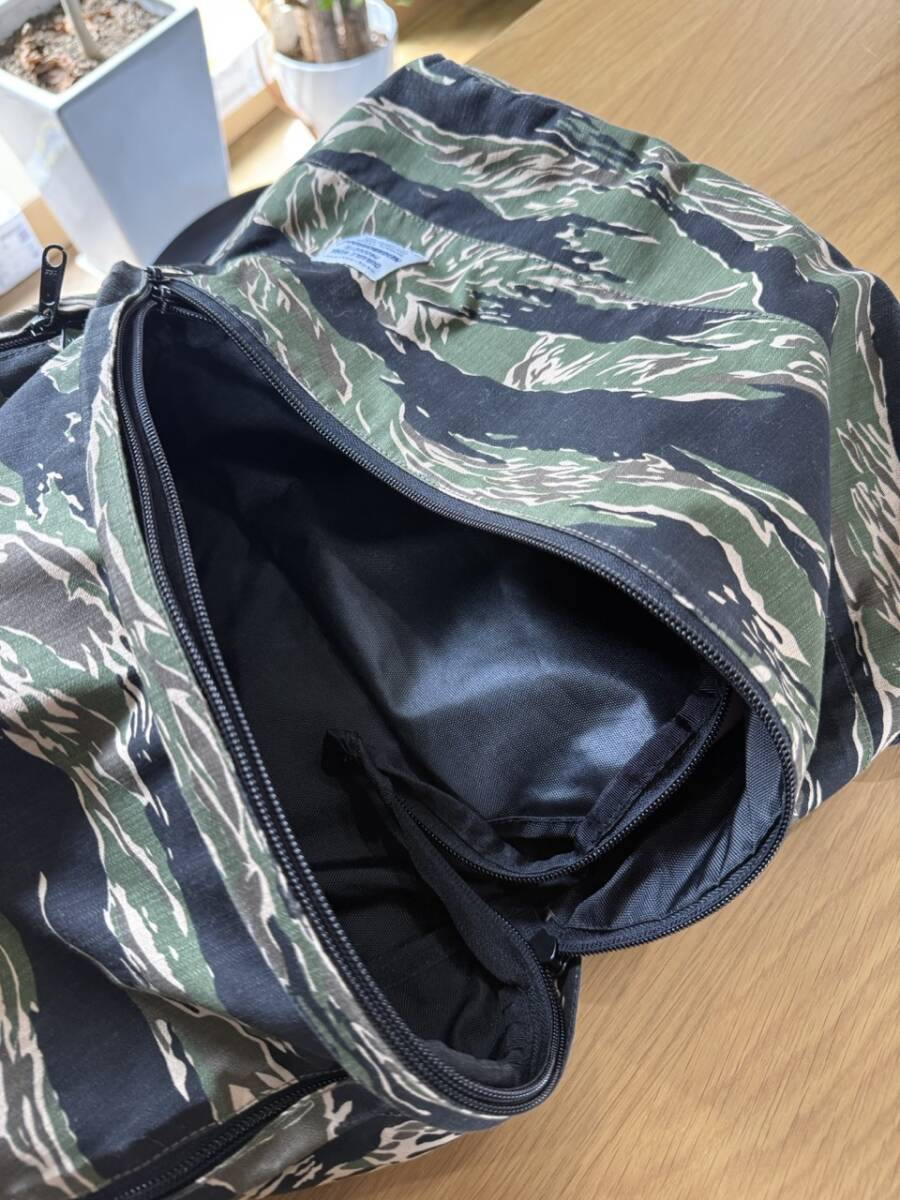 タイガーカモ柄のコットン生地を使用したベーシックなバックパックになります。